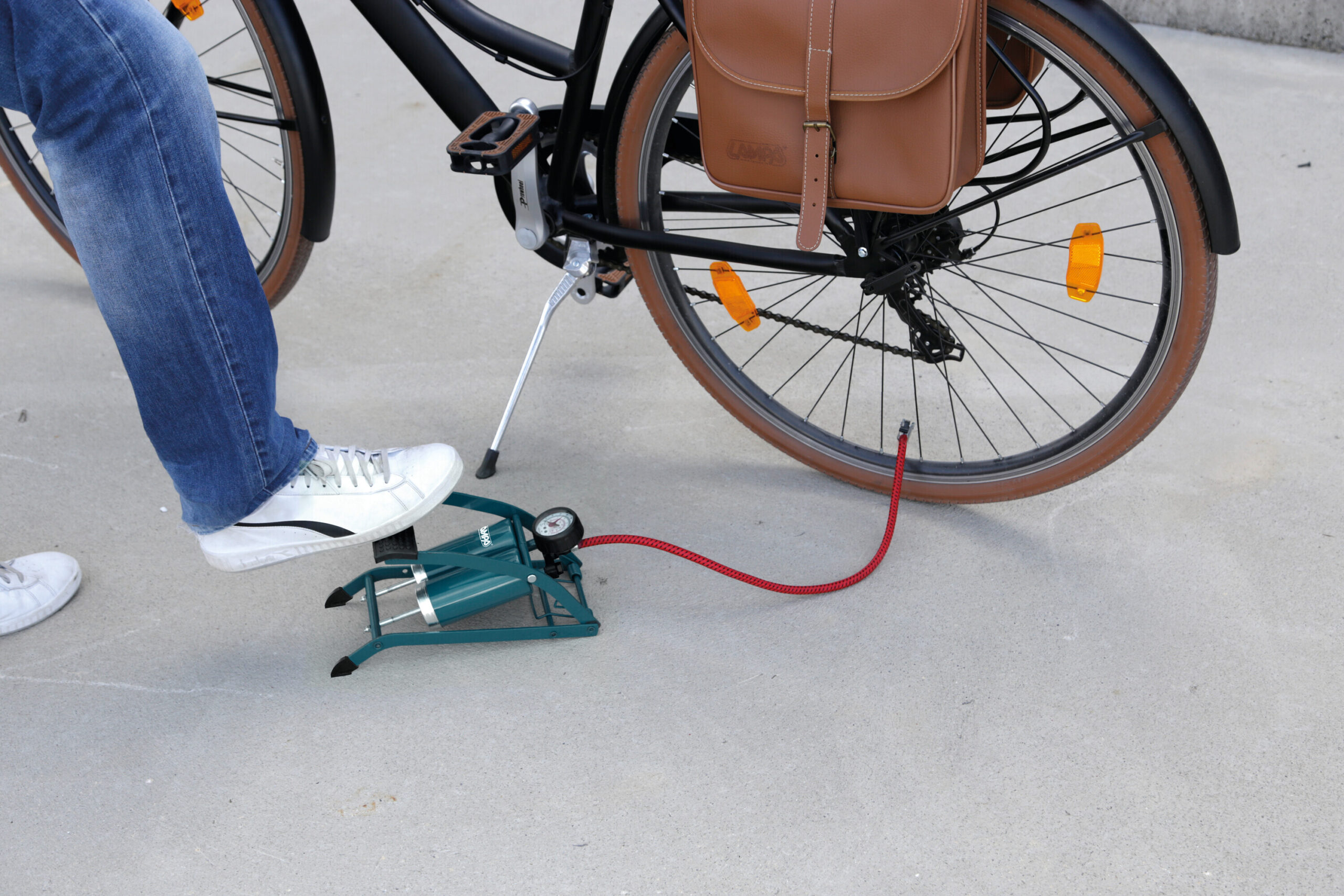 Pompa gonfiaggio tre-piedi in acciaio – H 440 mm – Ø 35 mm (Colori assortiti)