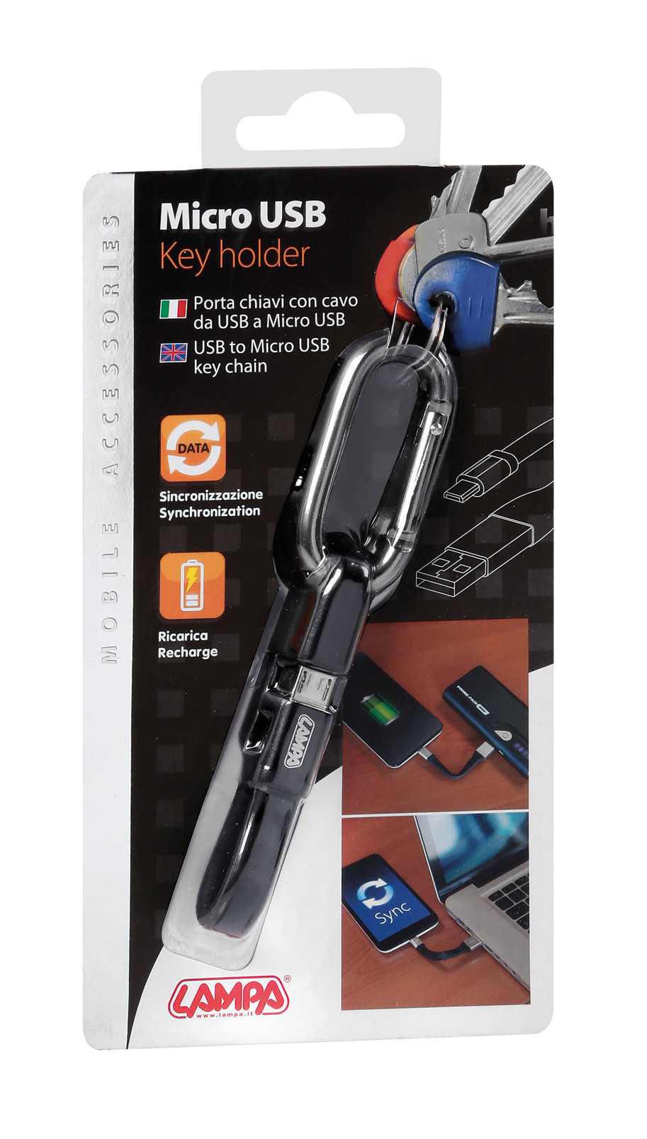 Portachiave con cavo Usb > Micro Usb, 10 cm – Blister 1 pz