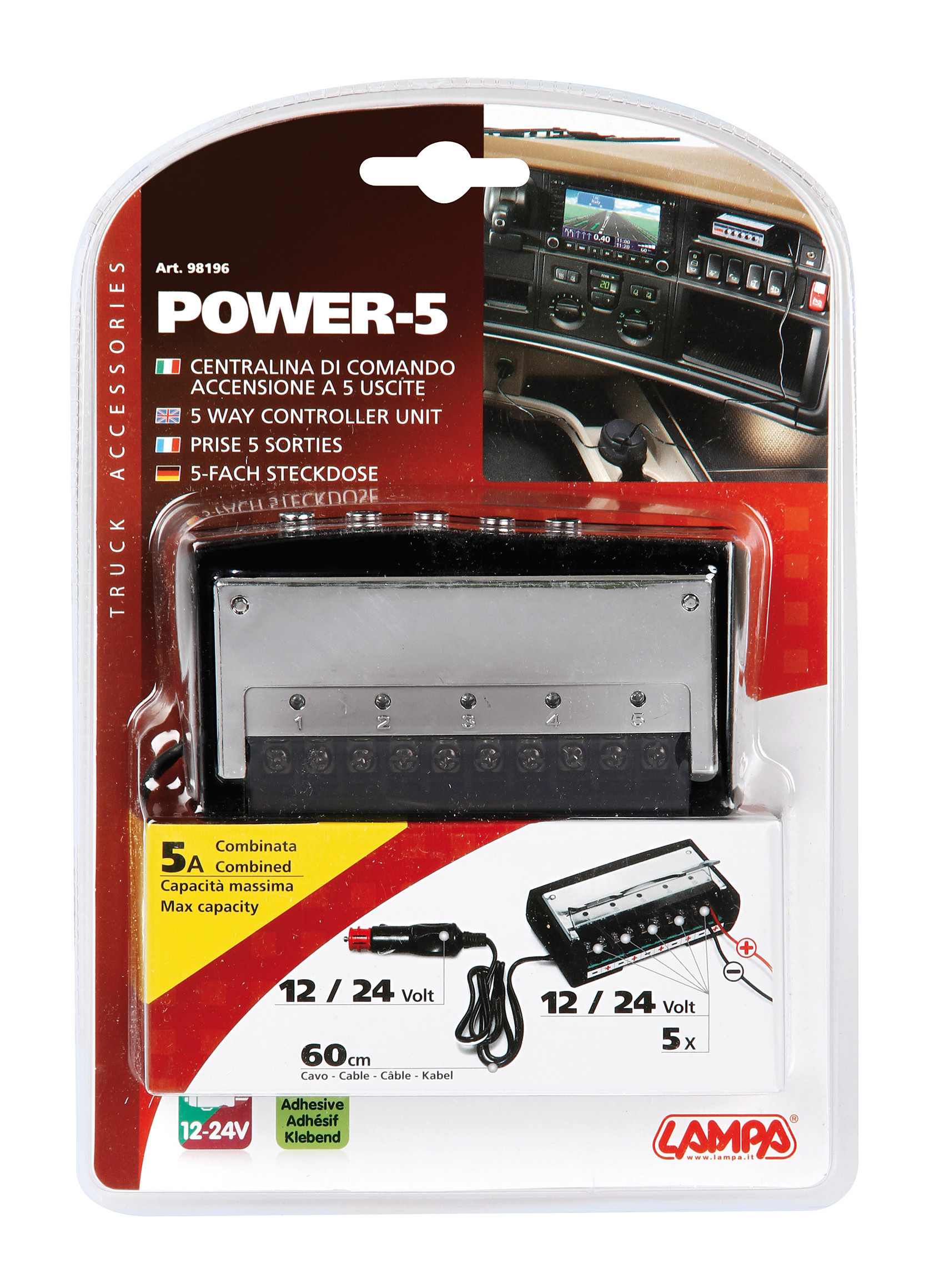 Power-5, centralina di comando, accensione a 5 uscite, 12/24V