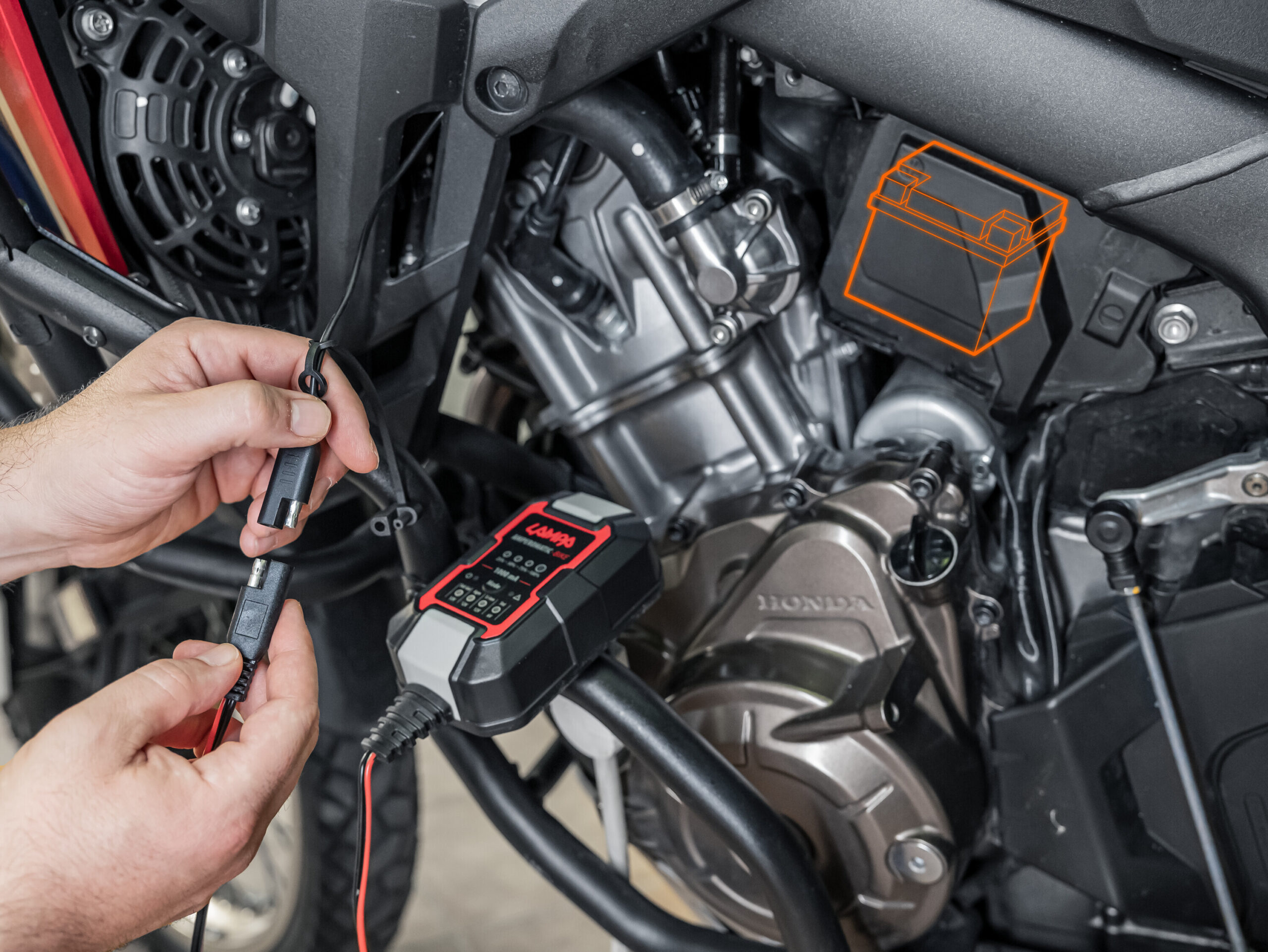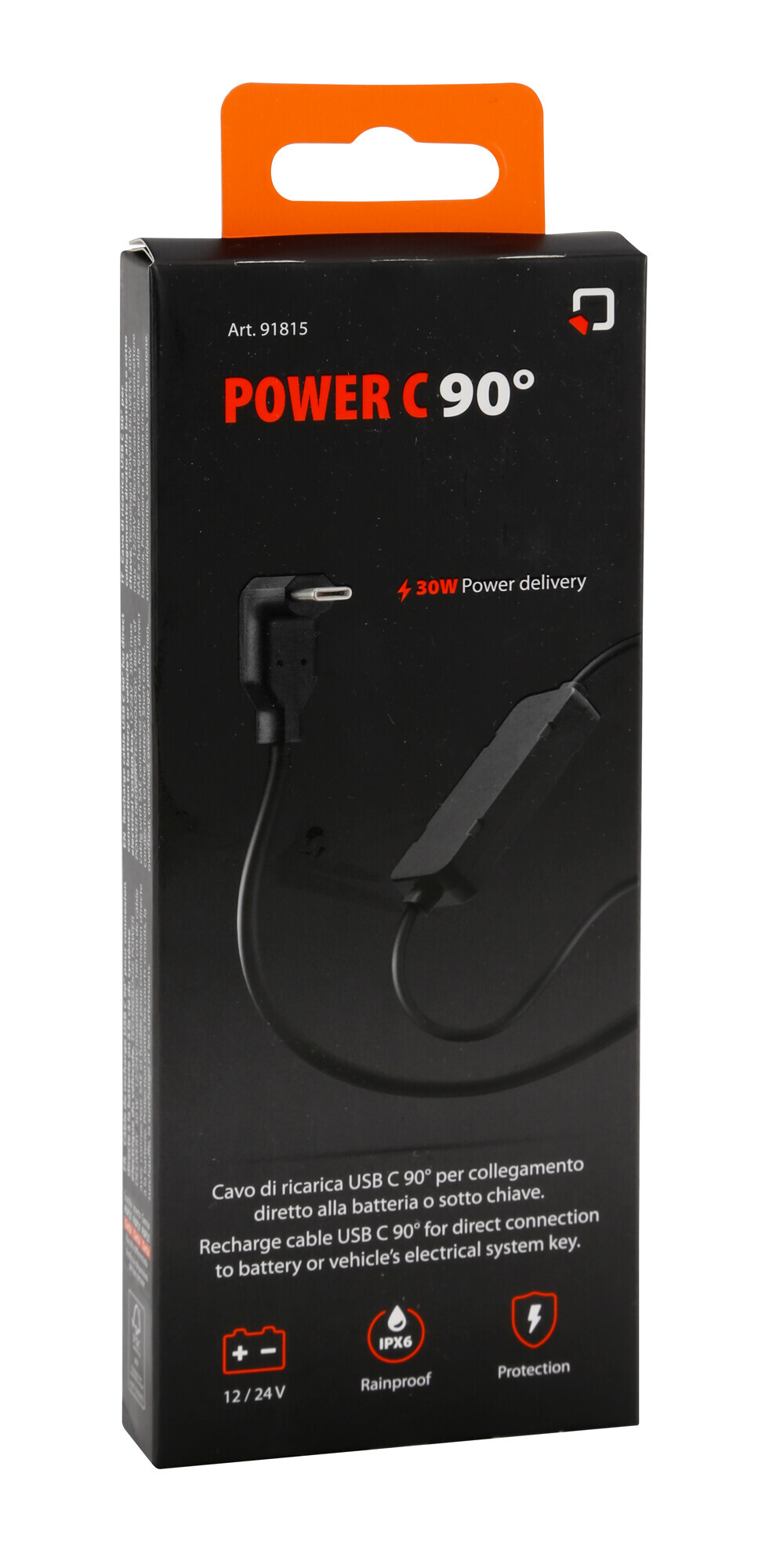 Tecnologia Power Delivery, 30W max. Cavo da 180 cm con connettore SAE e fusibile per collegamento diretto alla batteria. Consente il collegamento di mantenitori di batteria che sfruttano il connettore SAE. Protezione da corto circuito, surriscaldamento, sovraccarico, sovratensione.