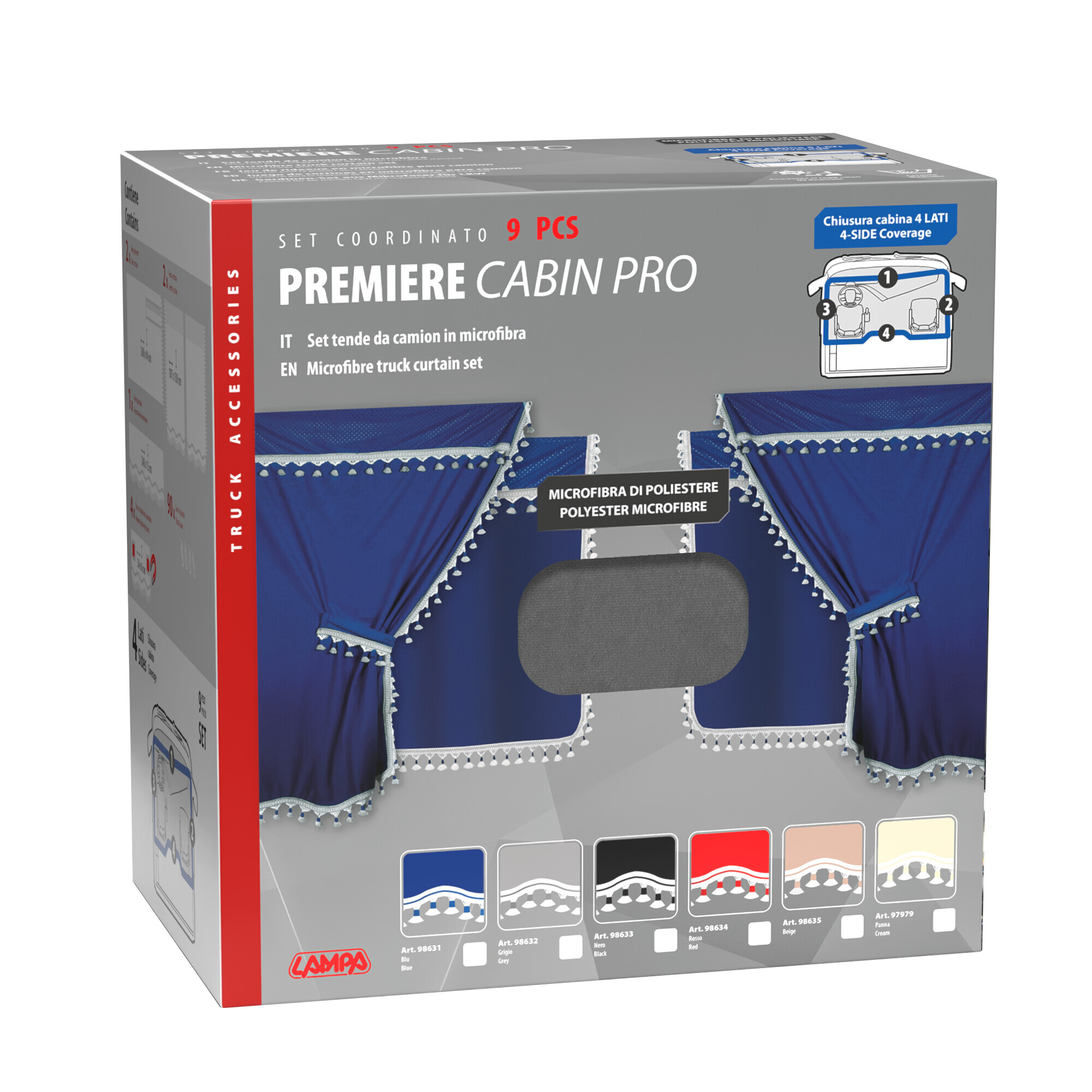 Premiere smart cabin, set tende microfibra per camion – Blu