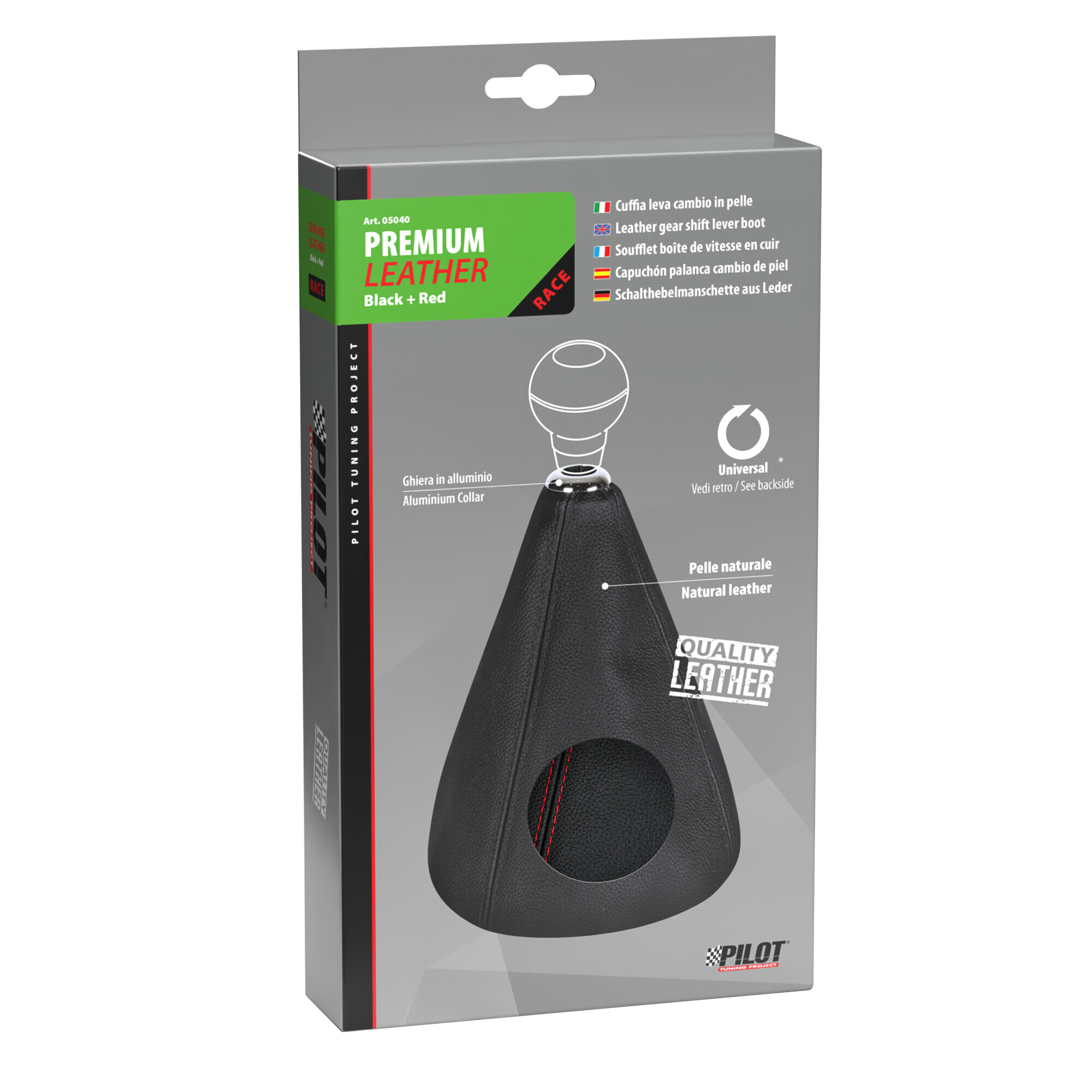 Premium Sport, cuffia leva cambio in pelle perforata – Nero/Rosso