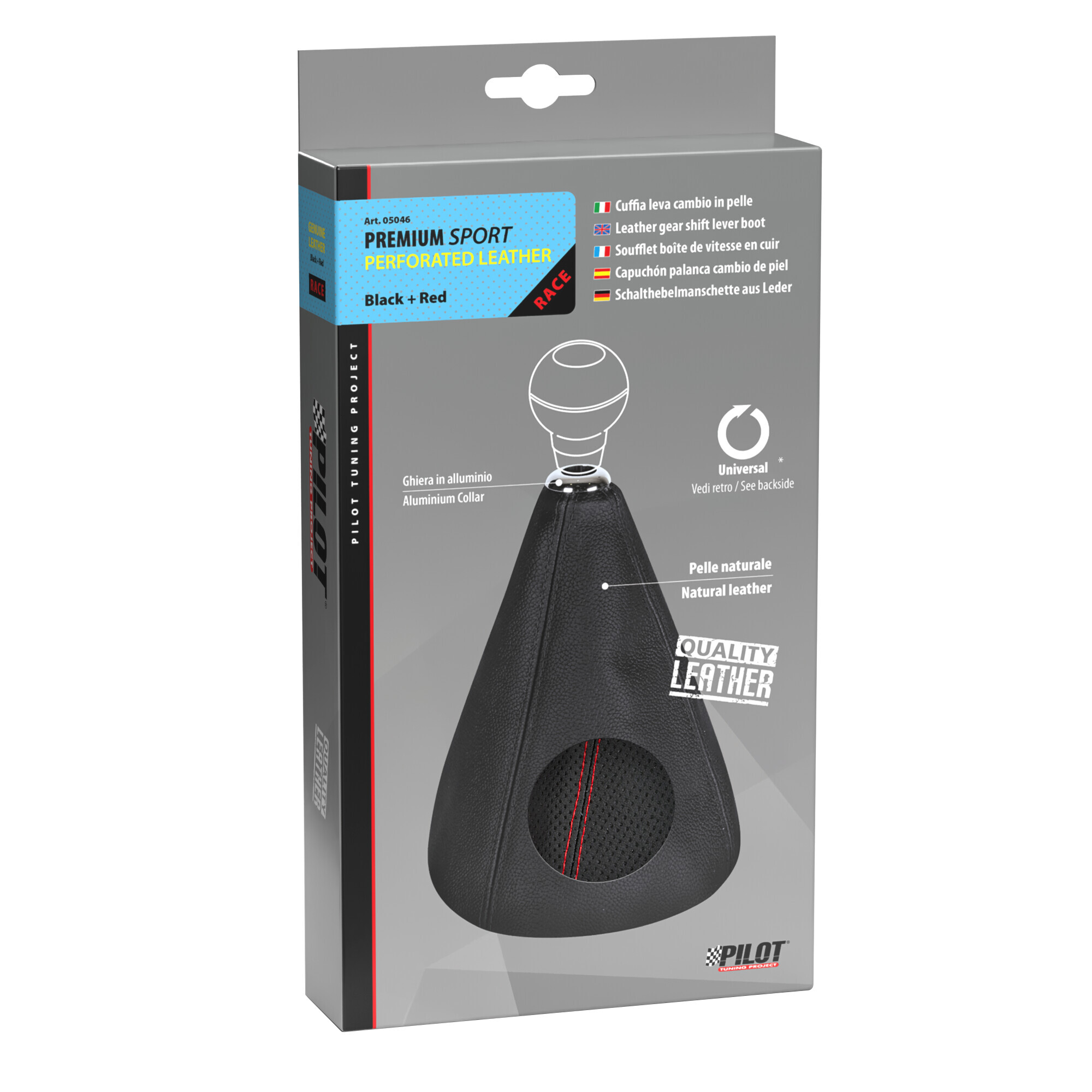 Premium Sport, cuffia leva cambio in pelle perforata – Nero/Rosso