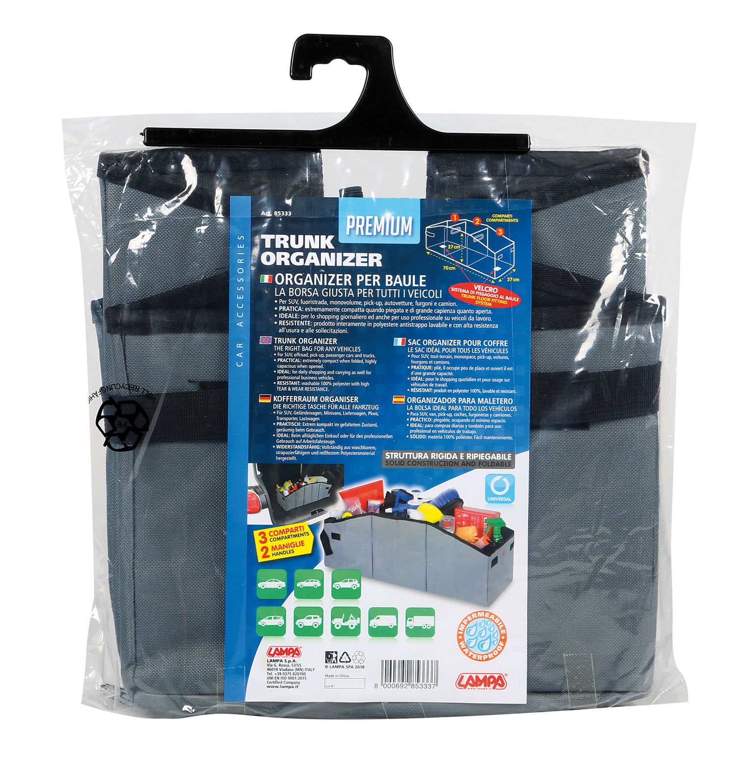 Borsa organizer per baule con rivestimento interno – S