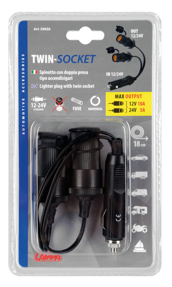 AD-2, Adattatore presa corrente doppia, 12/24V