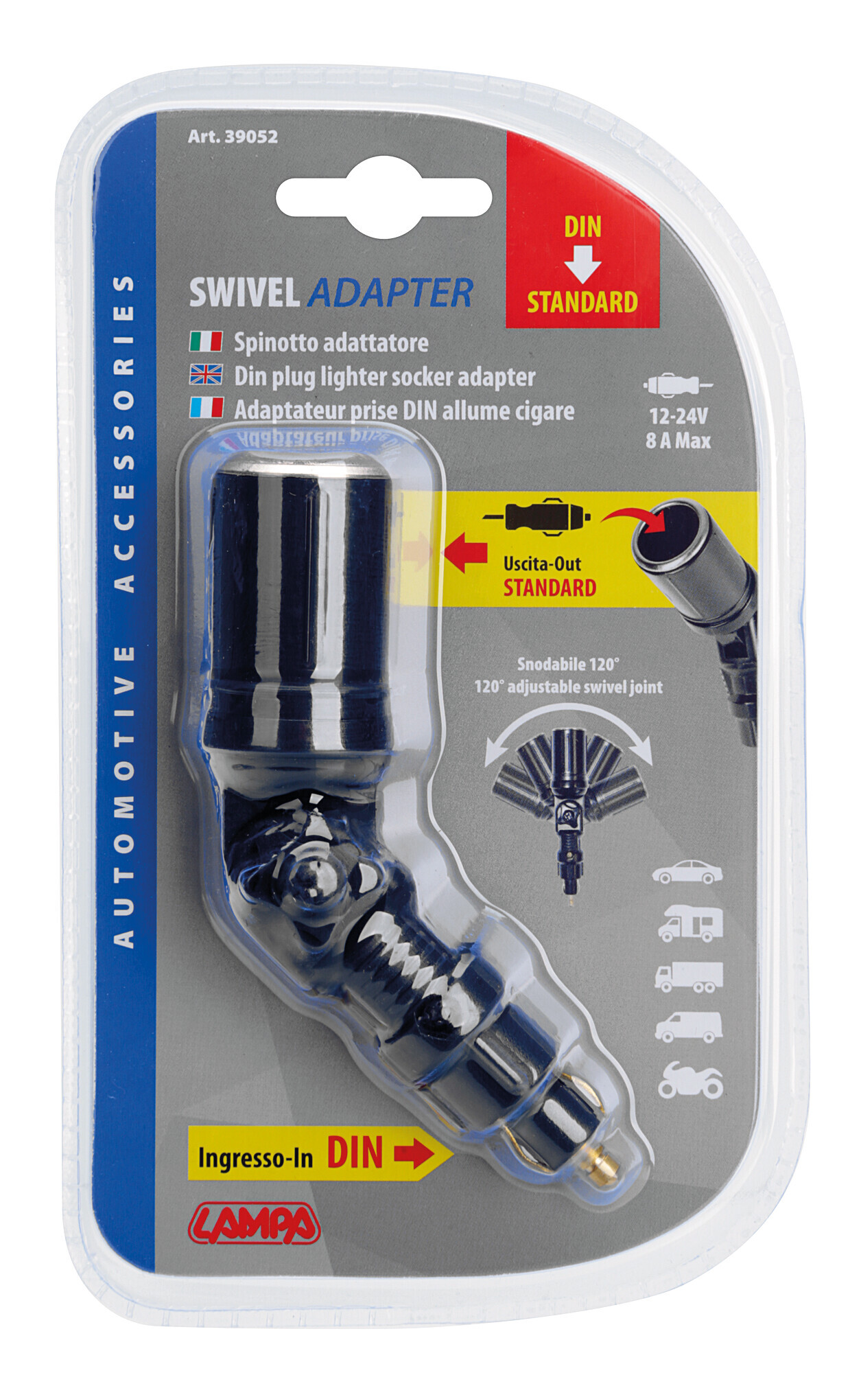 Adattatore snodabile per presa corrente, 12/24V