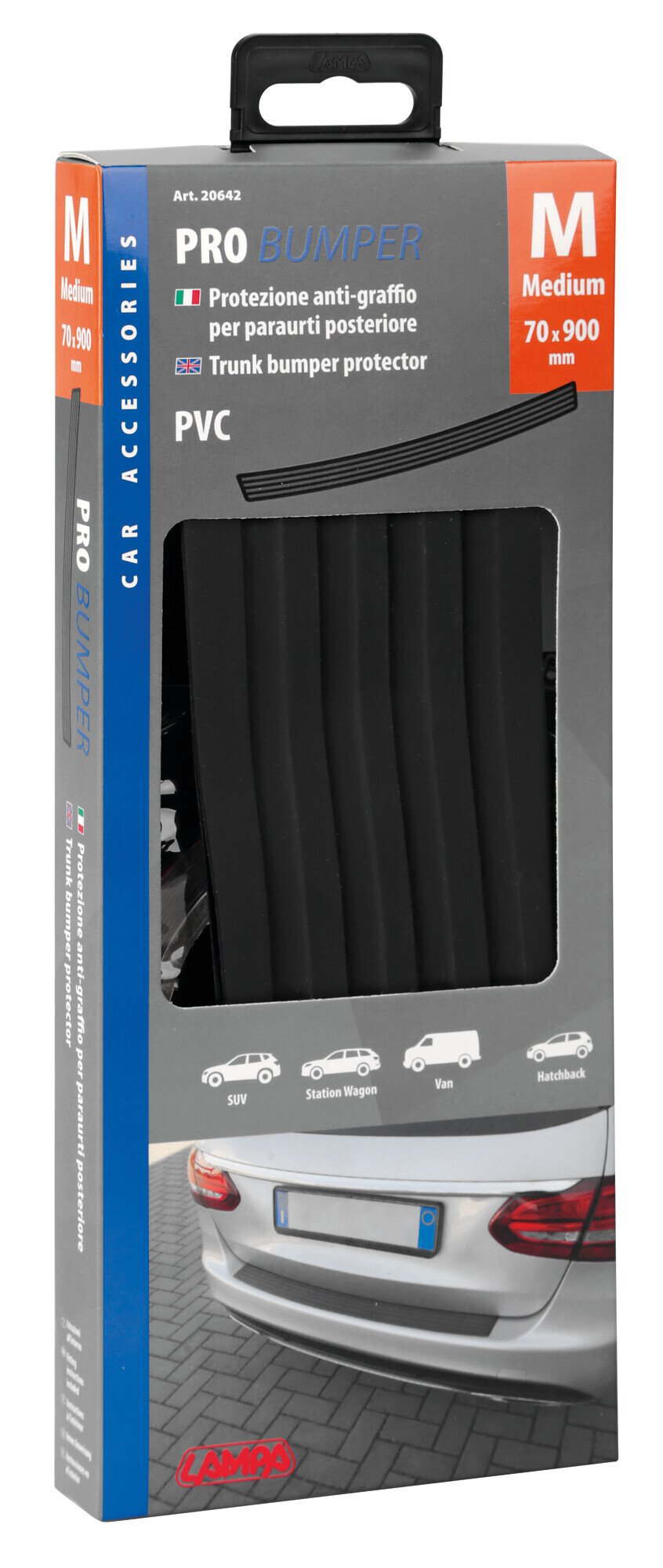 • Protegge e previene i graffi e scalfitture accidentali alla verniciatura del paraurti durante le fasi di carico e scarico dal baule, salita o discesa degli animali…
