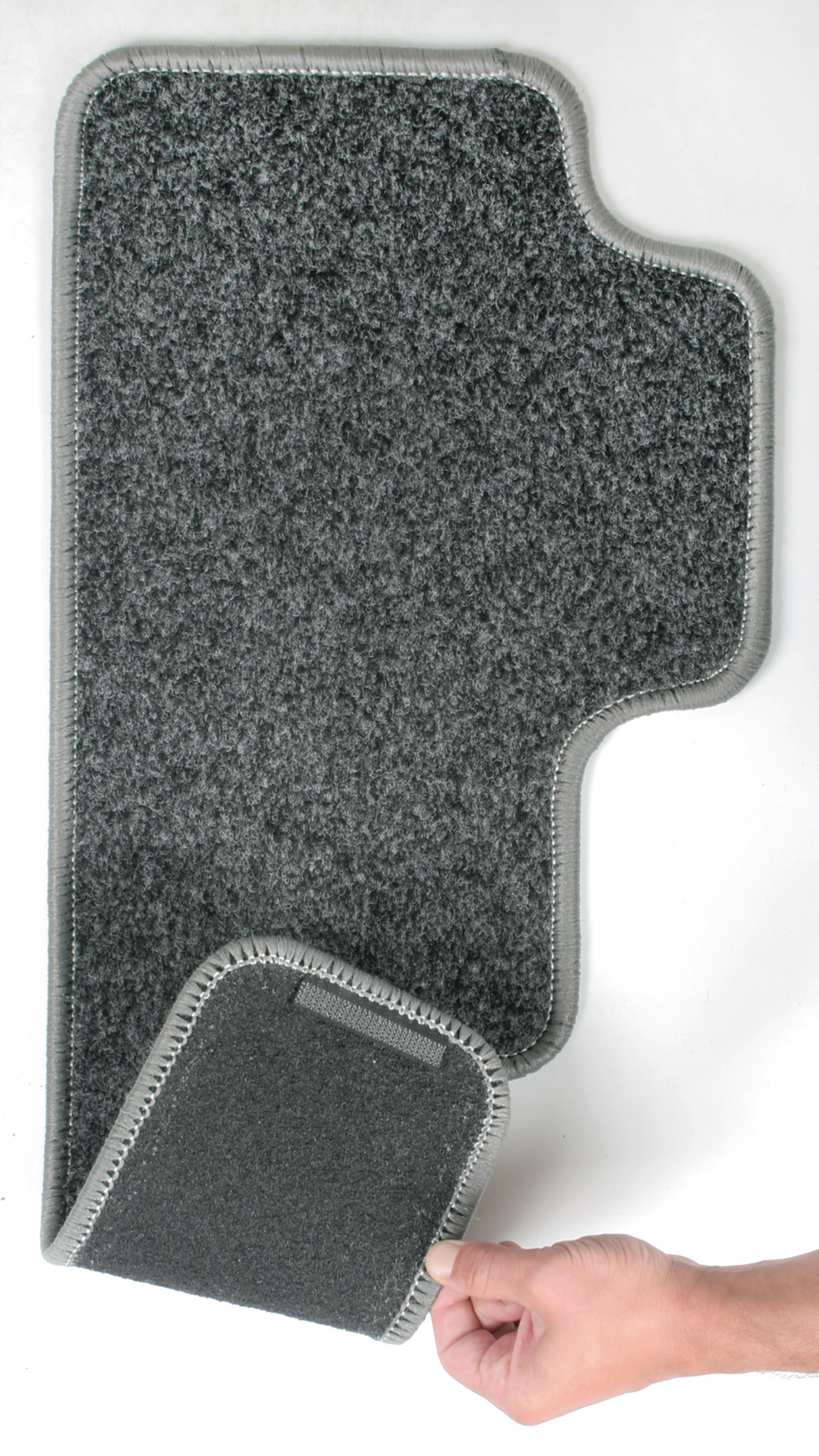 Sagoma e misure personalizzate per adattarsi al pianale della vettura. In moquette automobilistica lavabile, antistatica ed inodore. Con battitacco