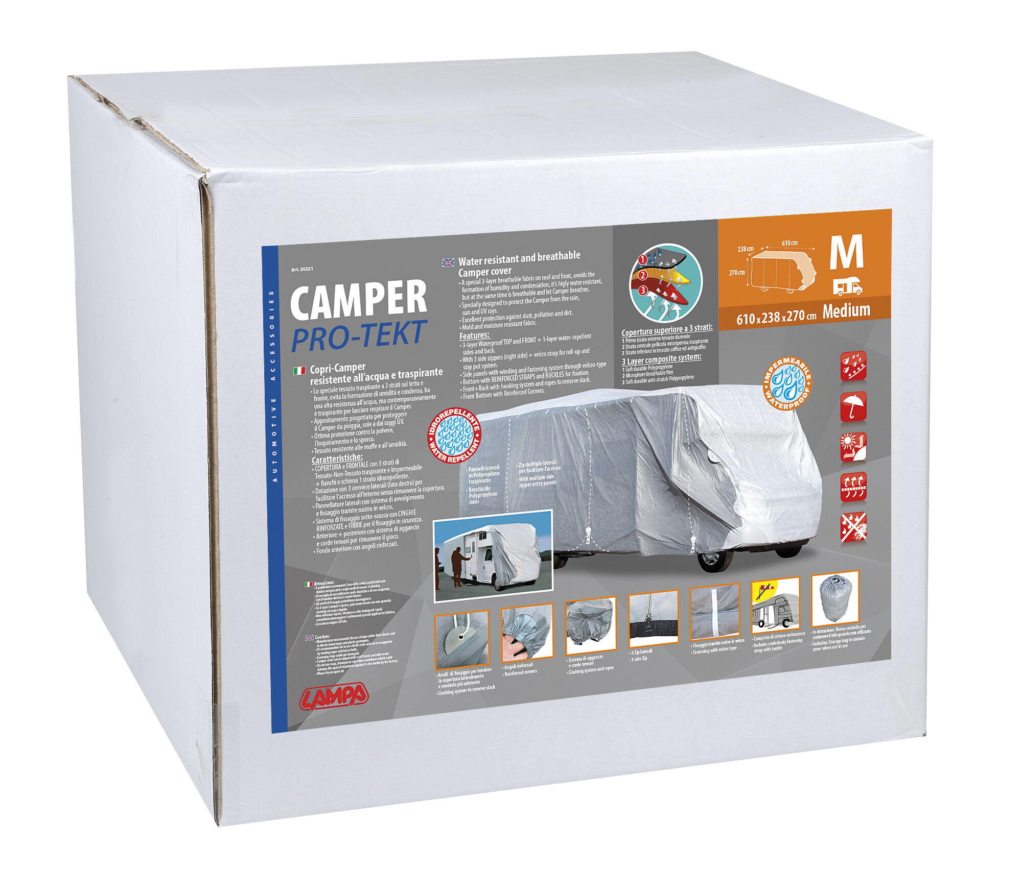 Pro-Tekt, copri-camper resistente all’acqua e traspirante – CM-M – cm 610x238x270