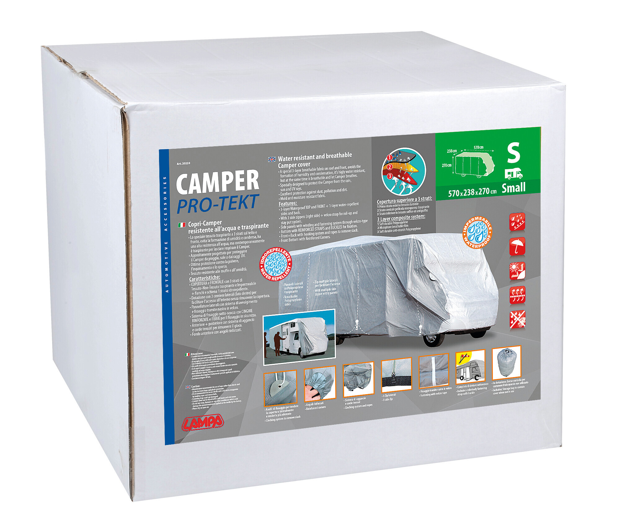 Pro-Tekt, copri-camper resistente all’acqua e traspirante – CM-S – cm 570x238x270