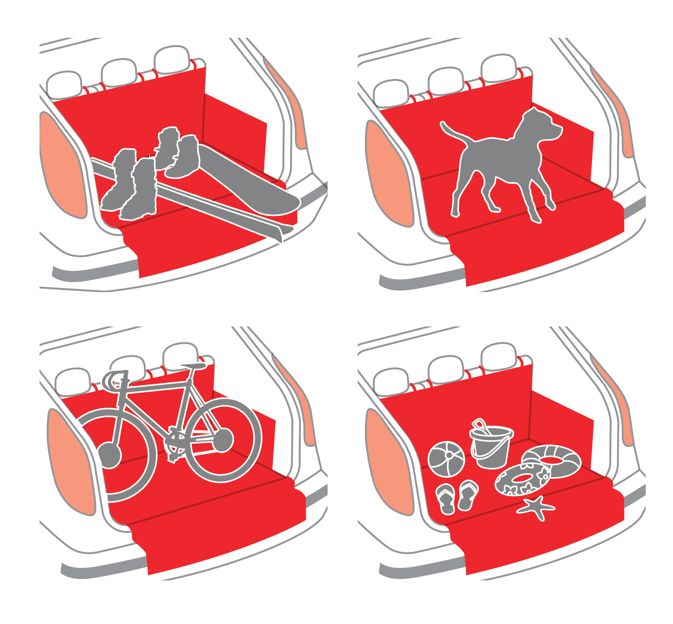 • Copre e protegge il piano, le pareti del baule e durante il carico e lo scarico, anche il paraurti.