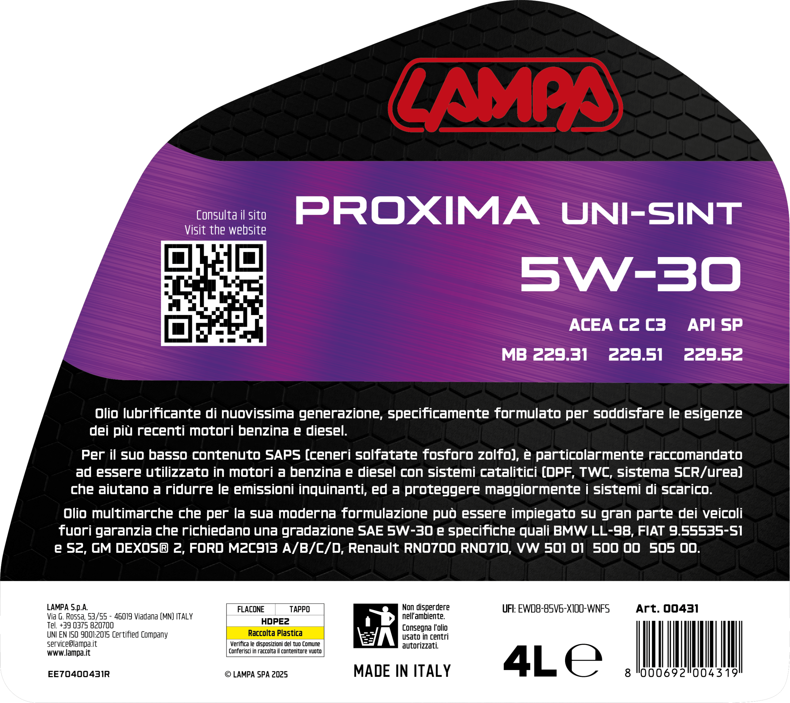 Proxima Uni-Sint 5W-30, olio motore auto – 4 L