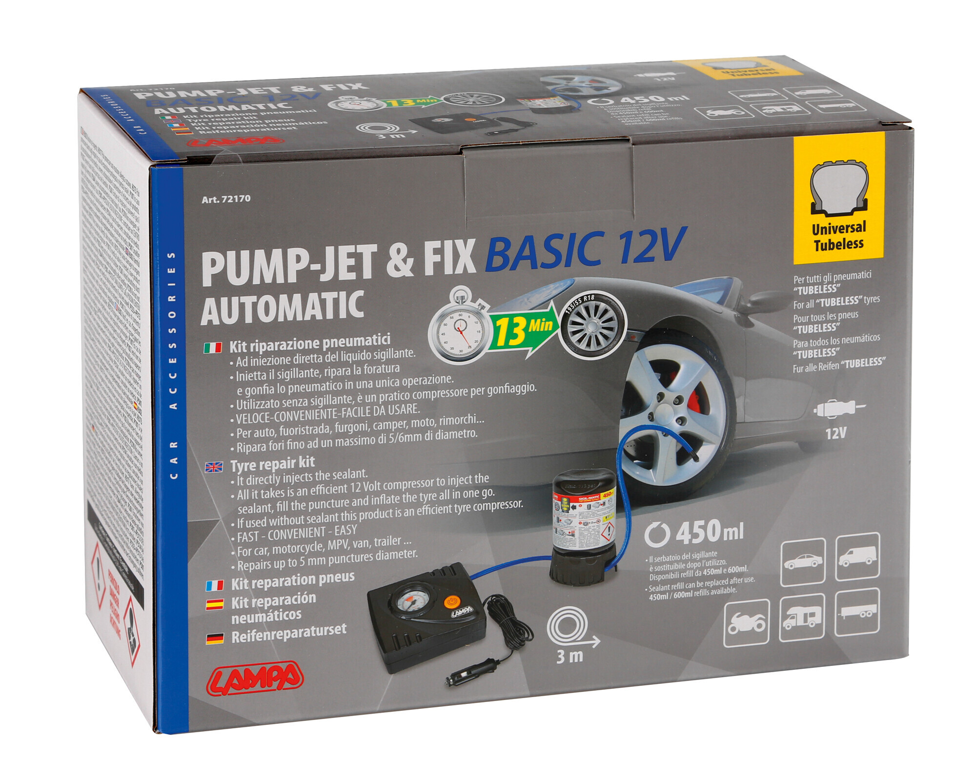 Pump-Jet & Fix Basic, kit riparazione pneumatici, 12V