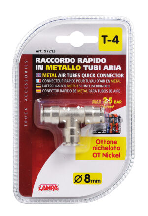 T-4, Raccordo in metallo, per tubi aria – Ø 8 mm