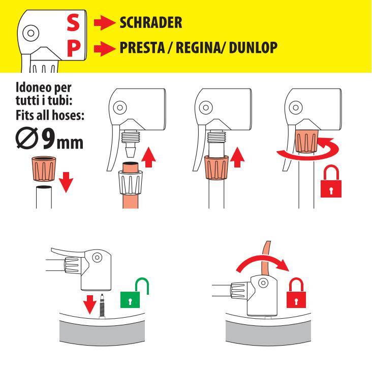 Per tubi Ø 9 mm – Idoneo per valvole Regina, Presta, Schrader, Dunlop