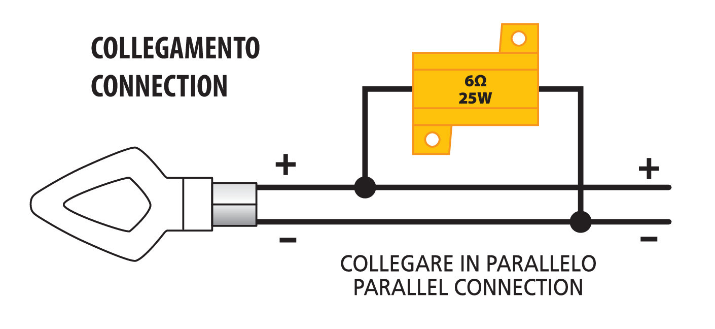 Con connettori rapidi. Esempi di utilizzo: per eludere le centraline in caso di montaggio lampade o frecce a Led
