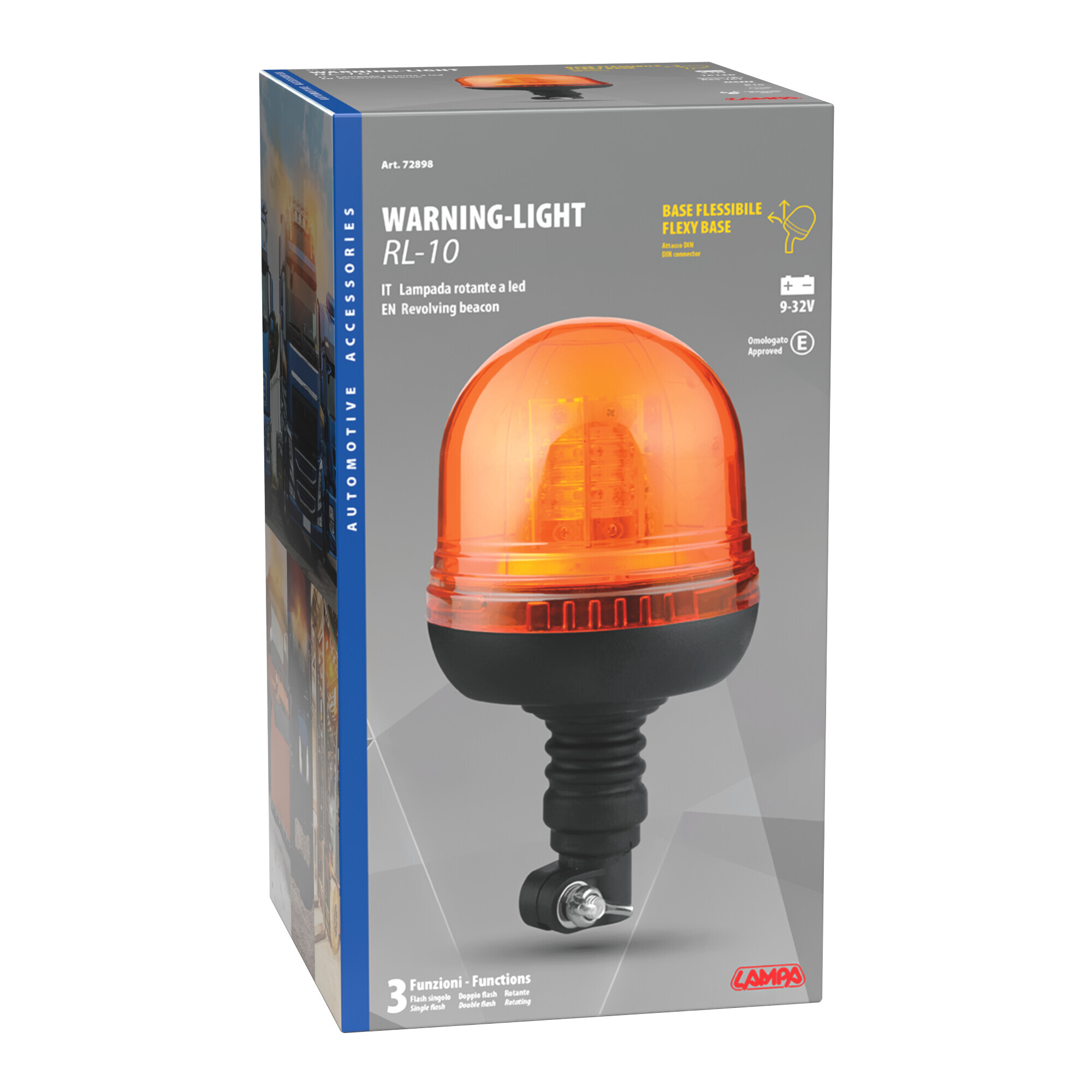 • Luce a 3 funzioni: rotante, strobo e lampeggiante.