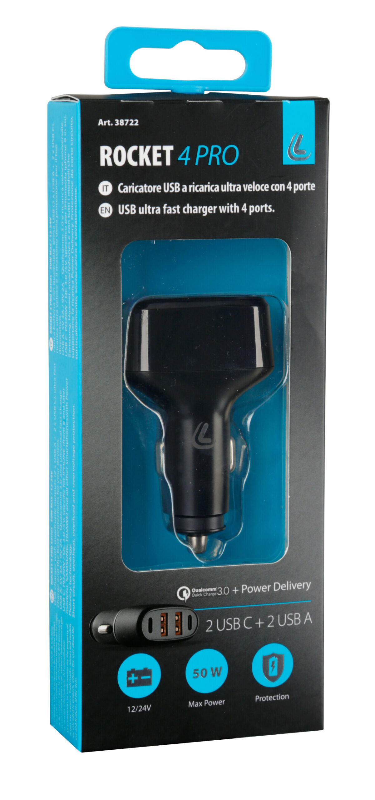 Rocket 4 Pro, caricabatteria 4 porte Usb – PD / QC 3.0 – 50W – 12/24V