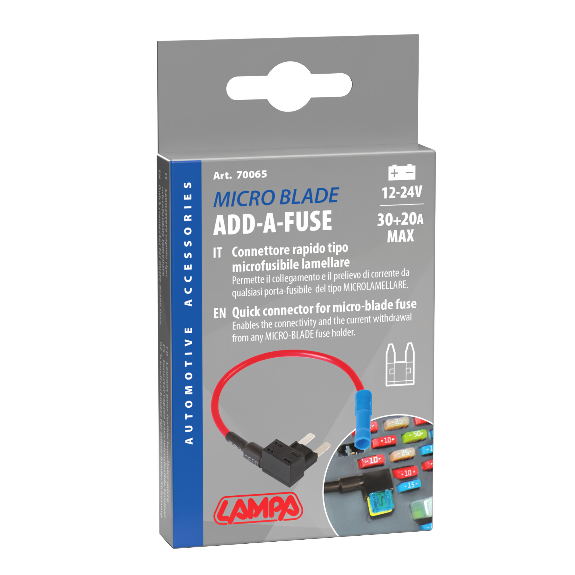 Preleva la corrente da qualsiasi porta fusibile lamellare consentendo di alimentare un dispositivo aggiuntivo
