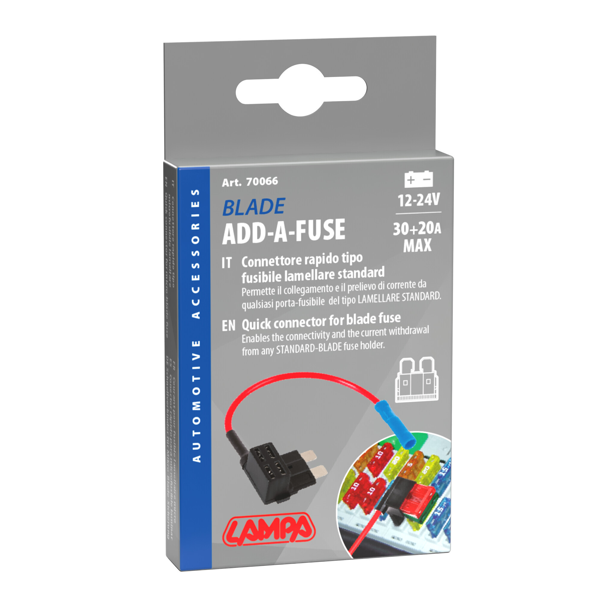 Preleva la corrente da qualsiasi porta fusibile lamellare consentendo di alimentare un dispositivo aggiuntivo
