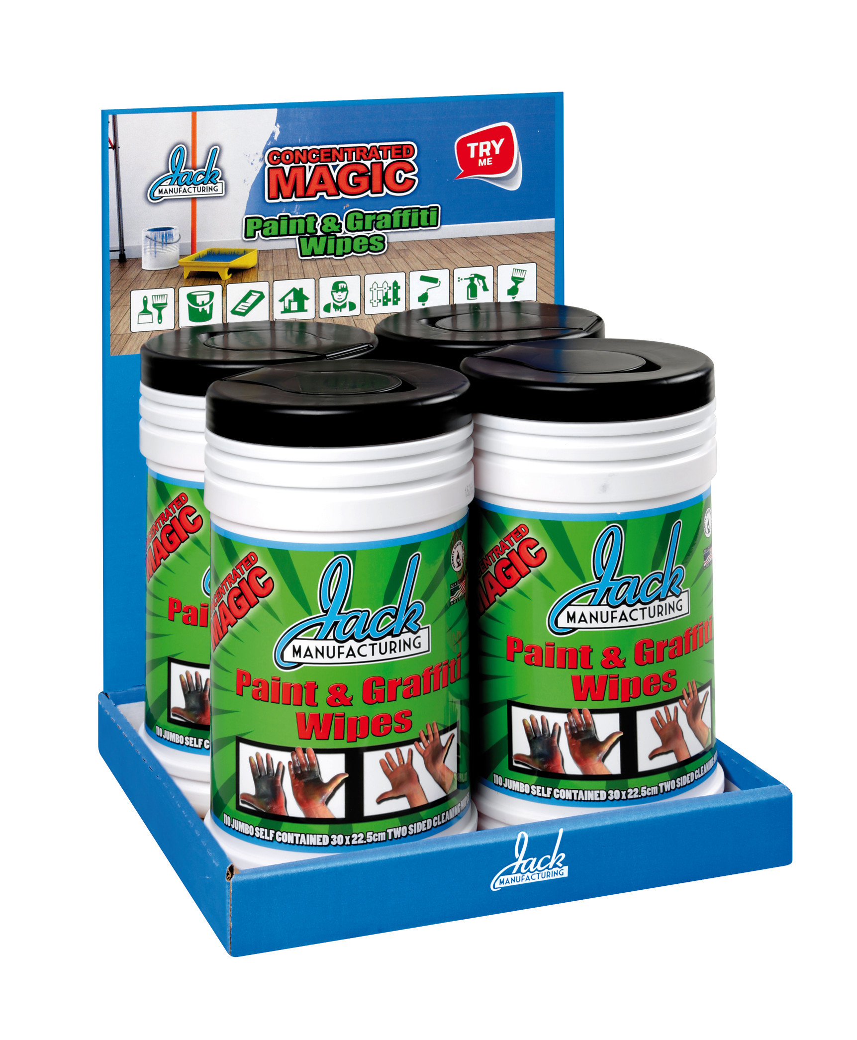 Rimuovono con facilità sporchi difficili come colla e vernici. Le salviette Paint & Graffiti rimuovono dalle mani lo sporco più difficile e ostinato che generalmente non viene tolto con prodotti generici, senza arrecare danni alla pelle o a superfici.