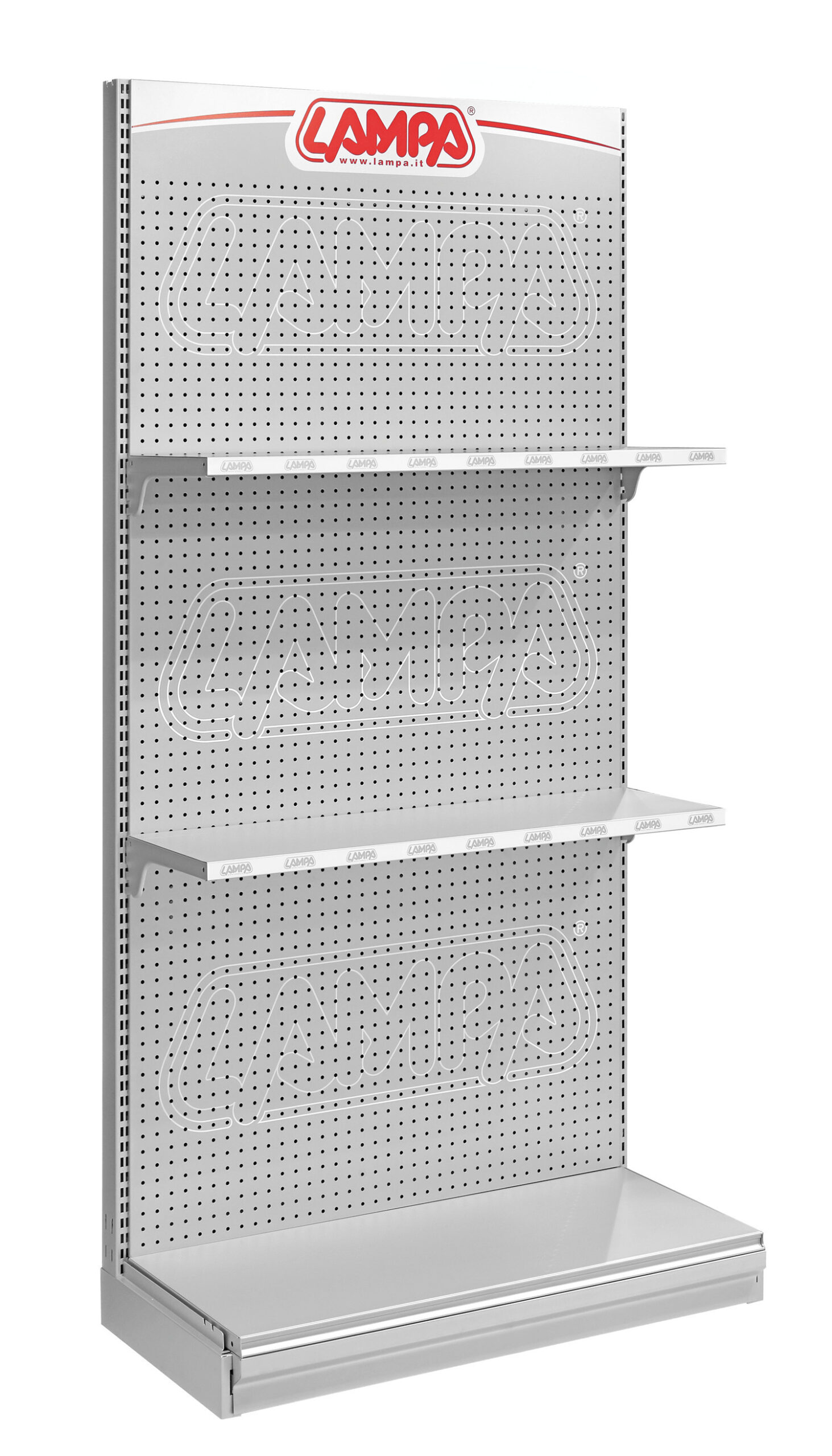 Scaffale modulare F9, testata bifacciale serigrafata