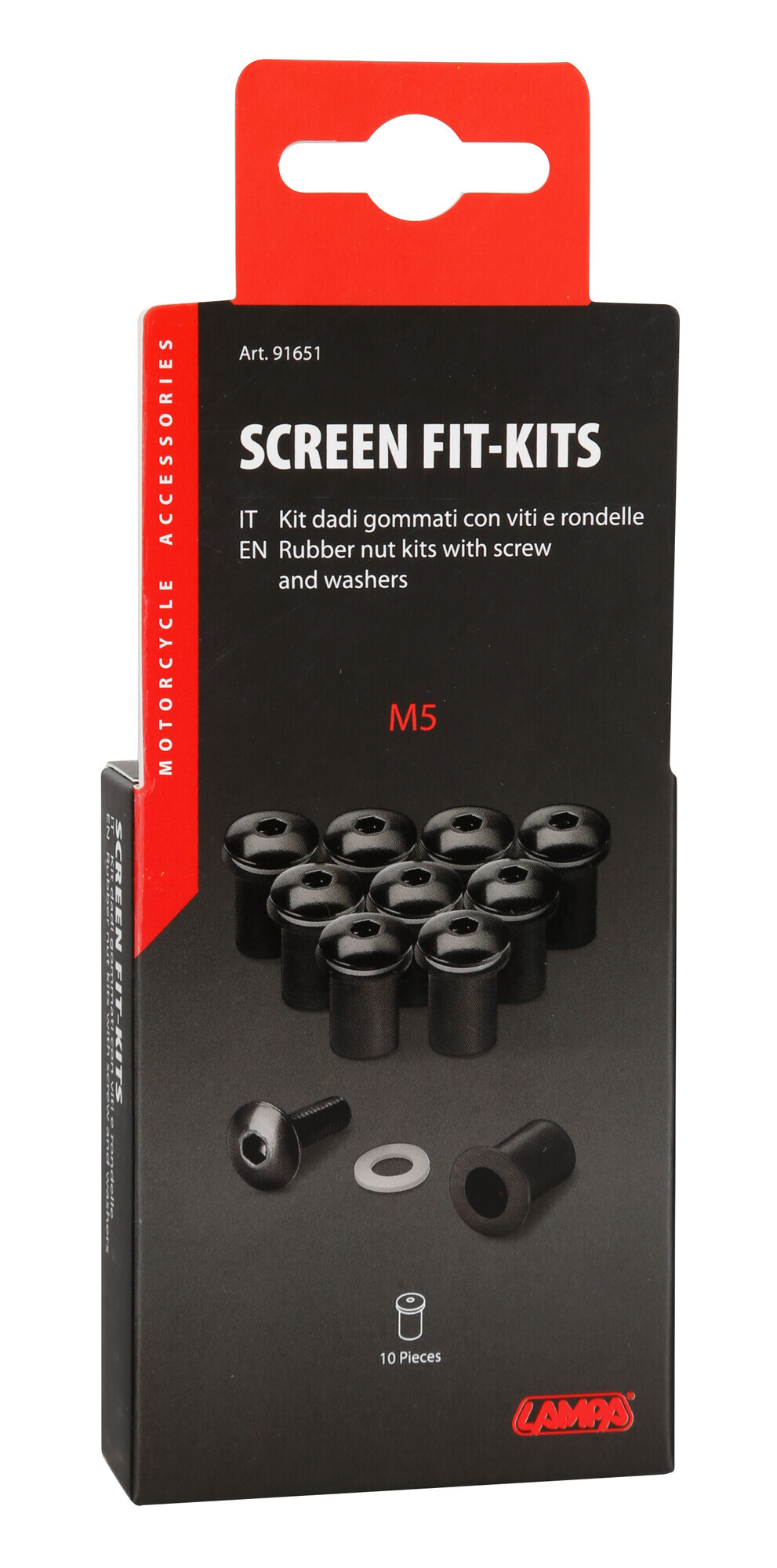 Screen Fit-Kits, kit dadi gommati con viti e rondelle (5 MA) – 10 pz – Nero