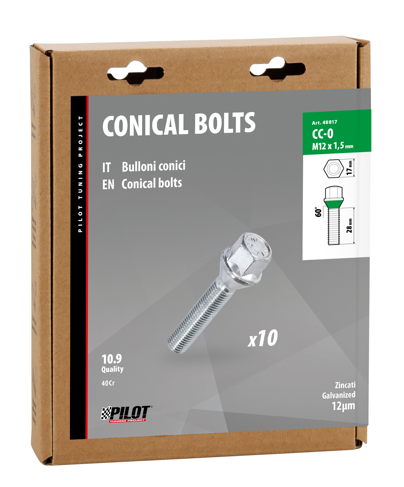 Set 10 bulloni conici corti – CC0 – Scatola