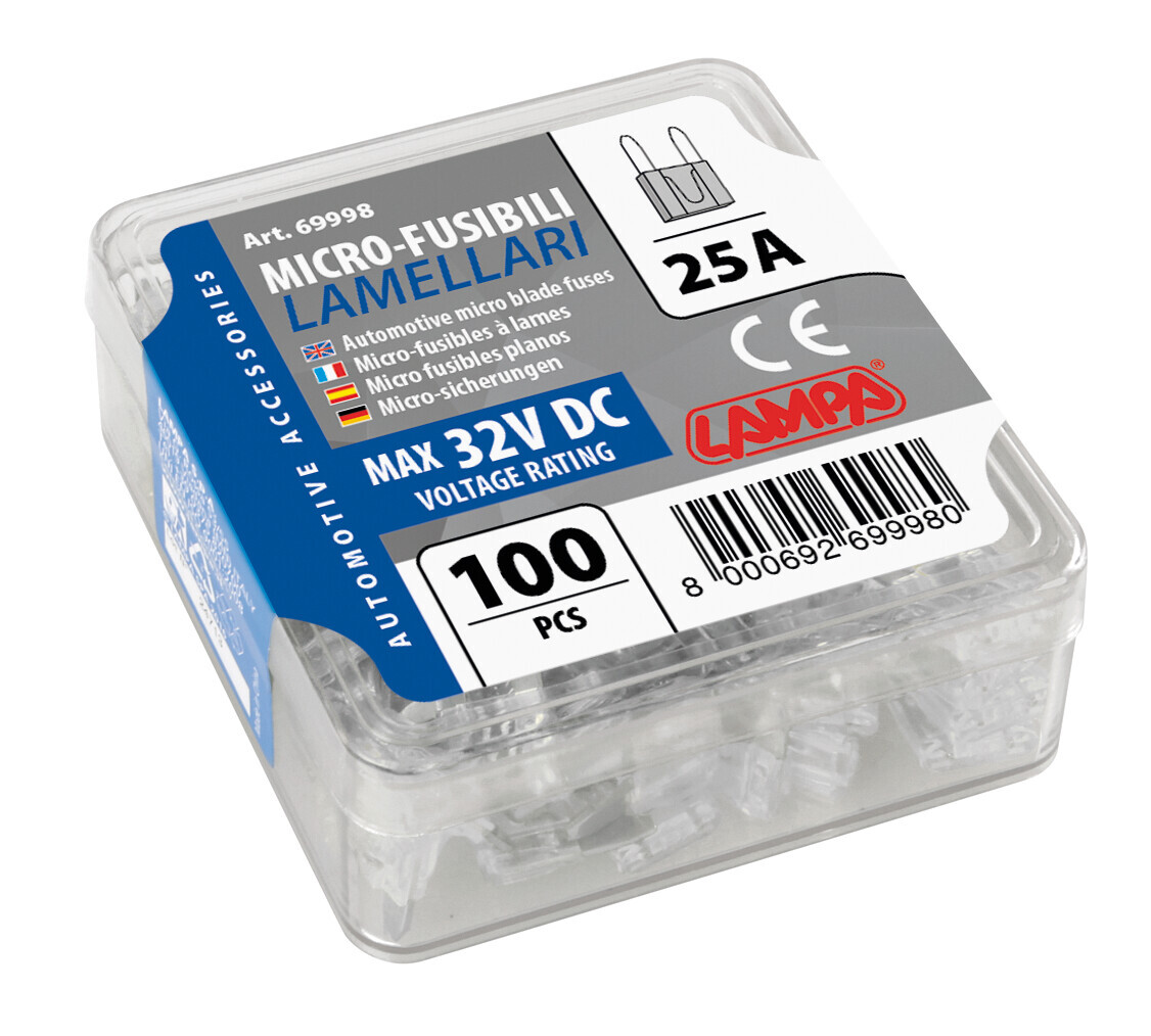 Set 100 micro fusibili lamellari, 12/32V – 25A