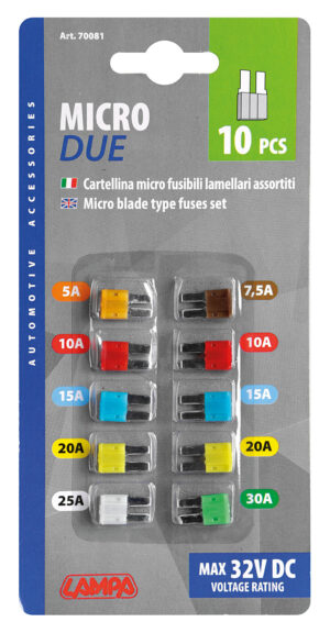 Set 10 micro fusibili lamellari Micro-Due assortiti, 12/32V