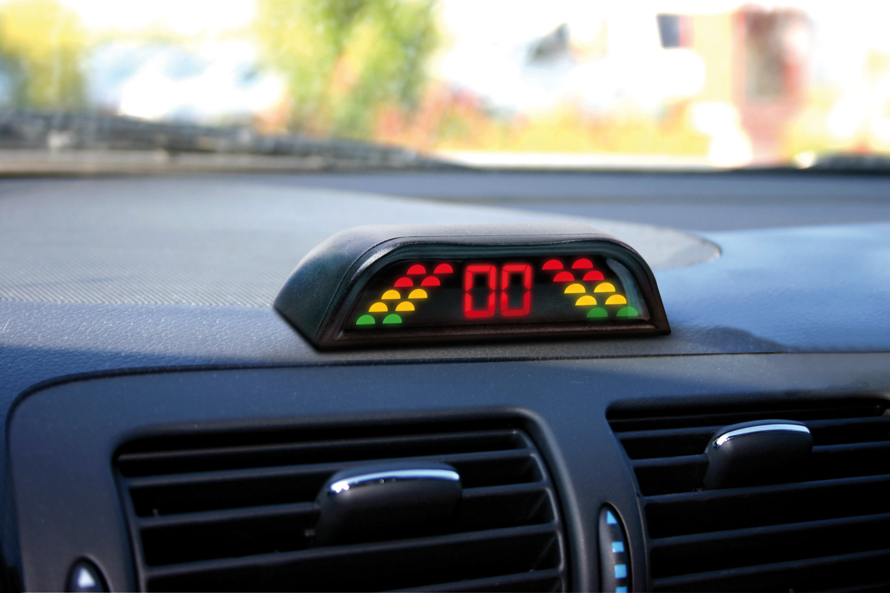 – Display digitale per cruscotto a doppia scala di led (lato destro e sinistro indipendenti). Indicatori della distanza progressiva a 3 colori con scala a 5 tacche