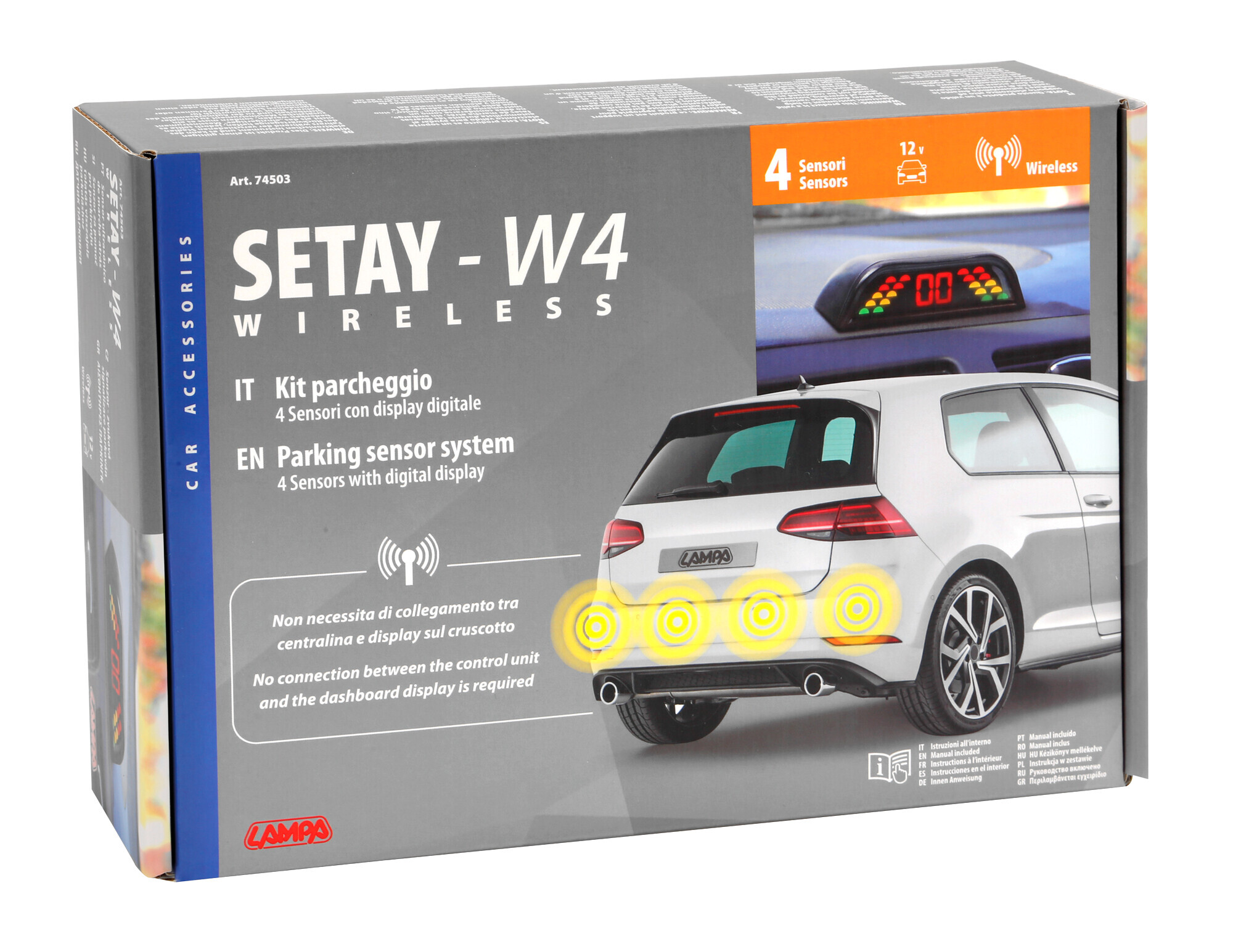 Setay W4, kit 4 sensori parcheggio con display wireless, 12V