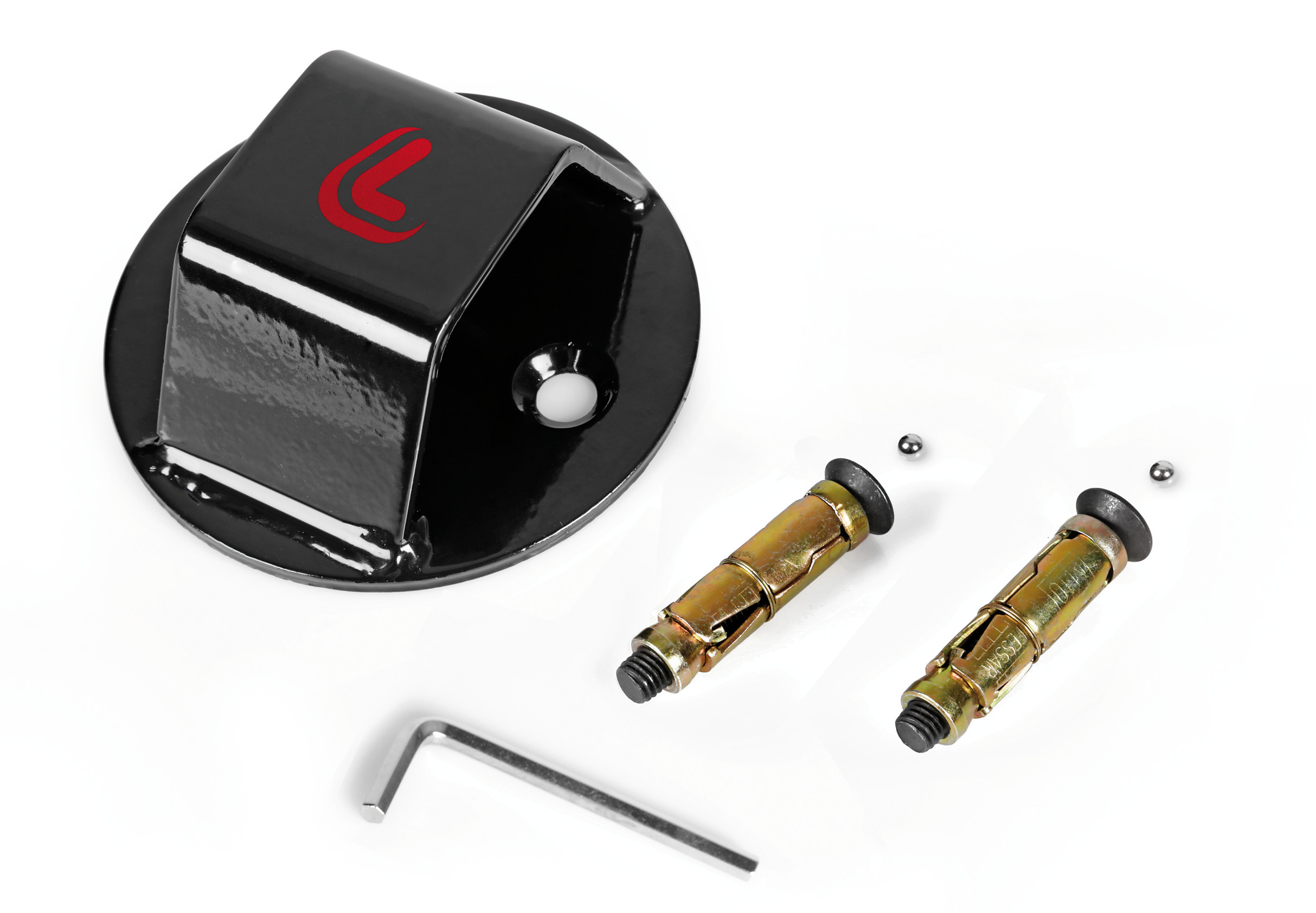 • Completo di 2 tasselli speciali con sfera antifurto per il fissaggio a terra