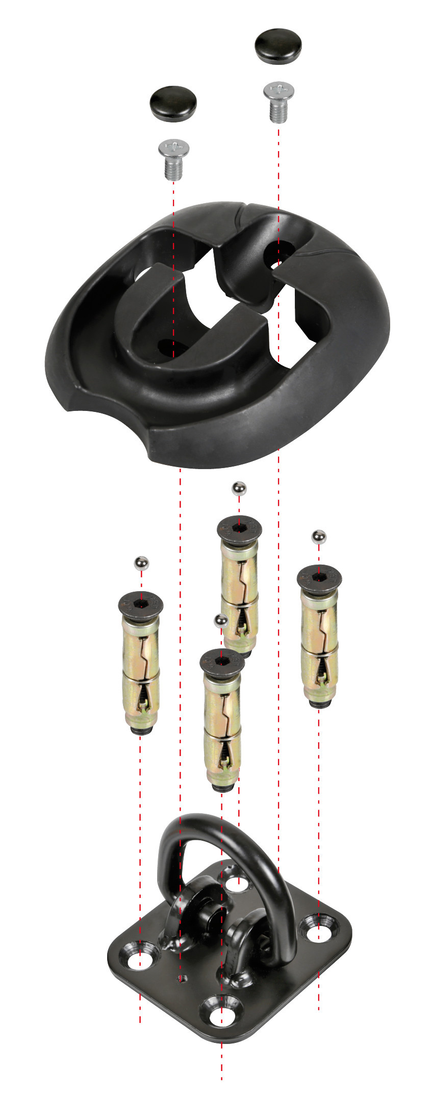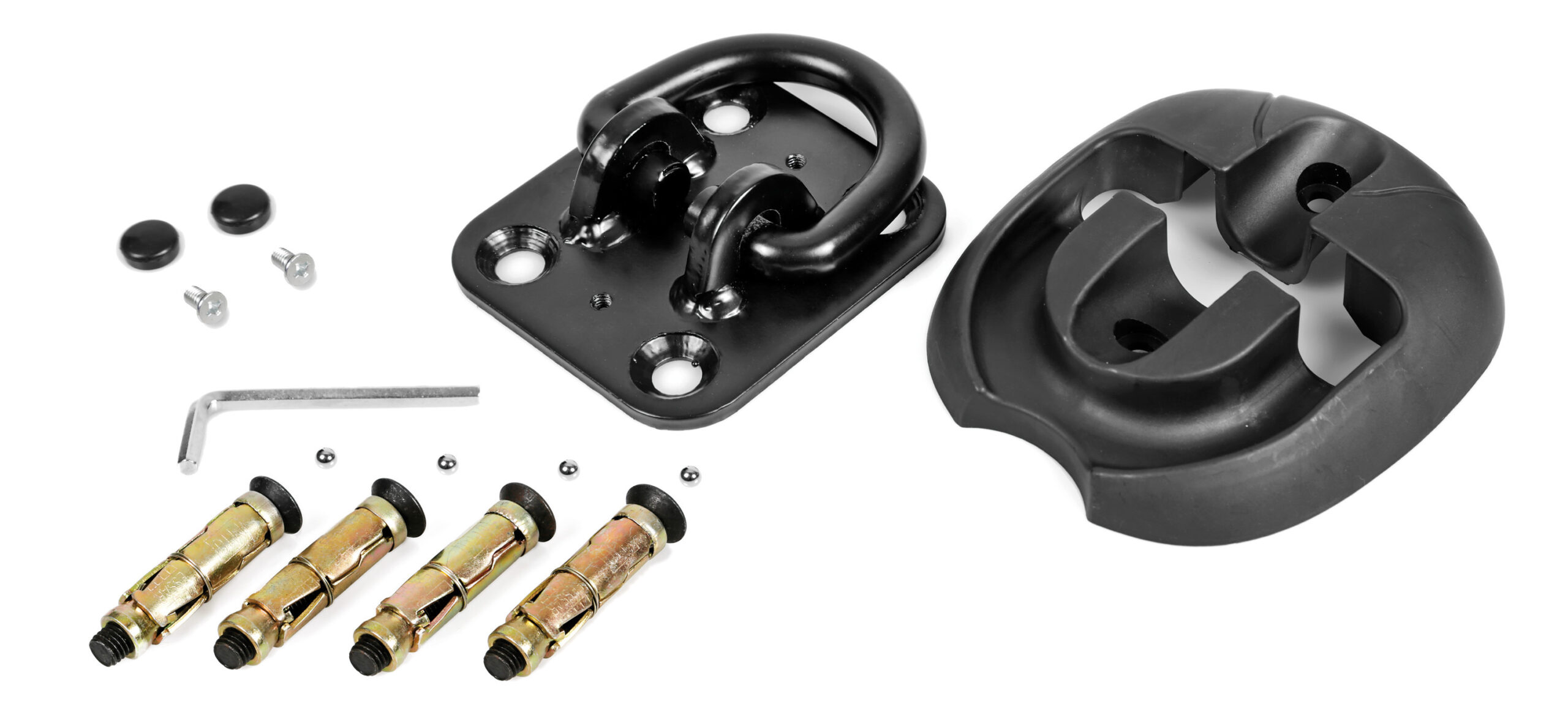 • Completo di 4 tasselli speciali con sfera antifurto per il fissaggio a terra