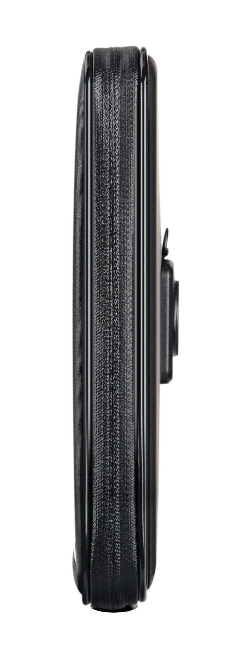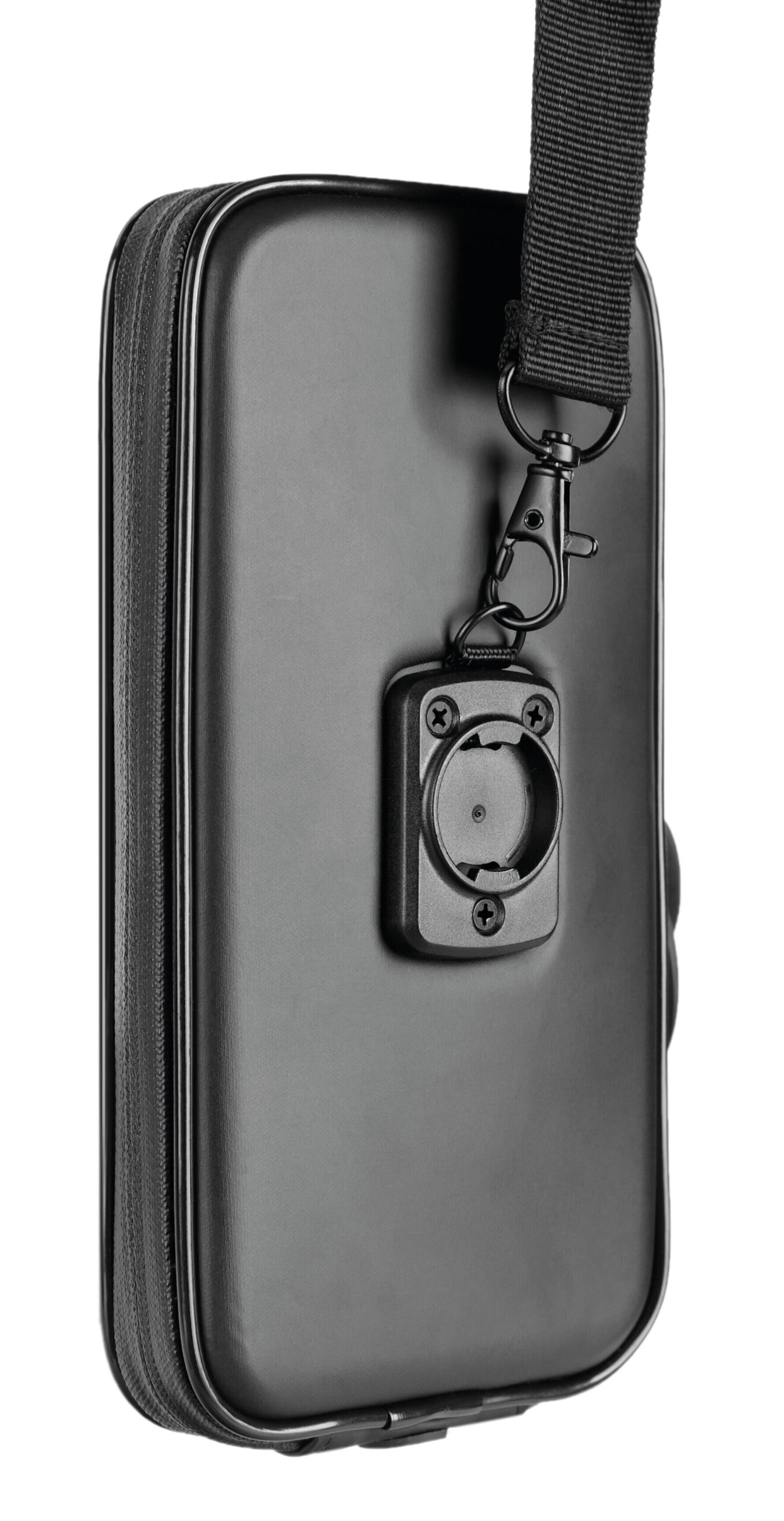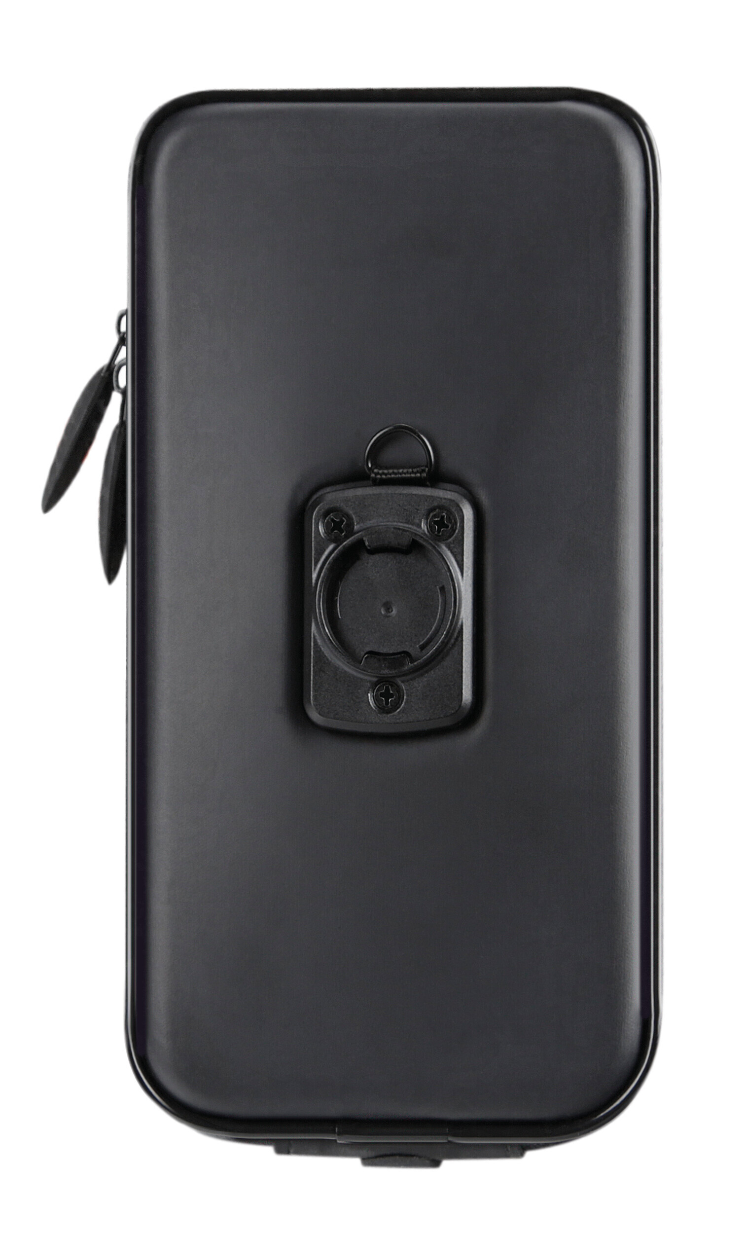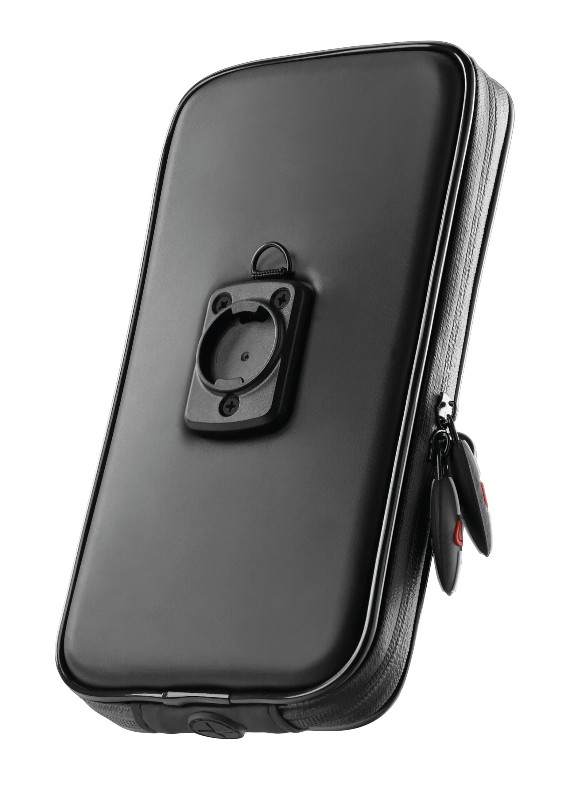 • Pellicola frontale trasparente per consentire l’utilizzo del touch screen, fissata tramite termosaldatura per aumentare la resistenza alla pioggia. Zip laterali impermeabili.