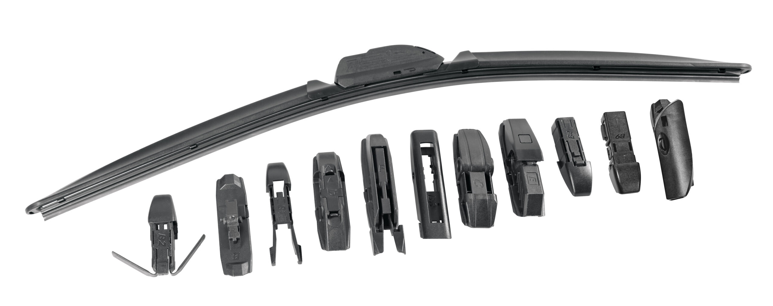 • 1 raccordo per il montaggio su tutte le vetture equipaggiate con tergicristalli tradizionali.