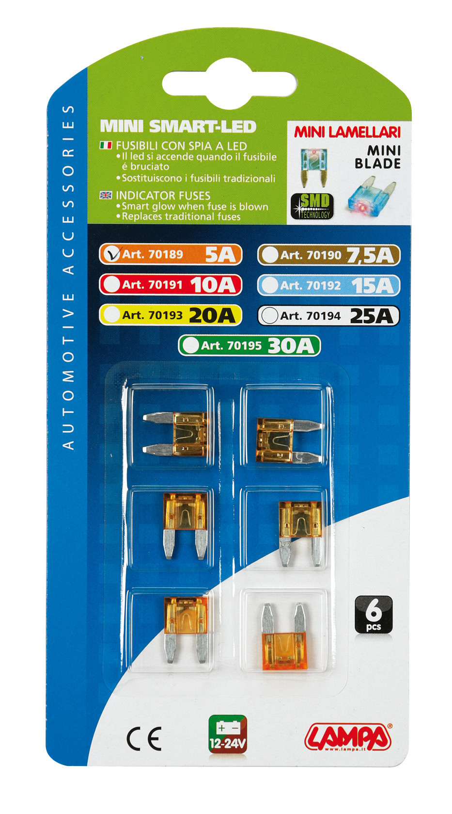 Smart Led, set 6 micro-fusibili lamellari con spia a led, 12/32V – 5A