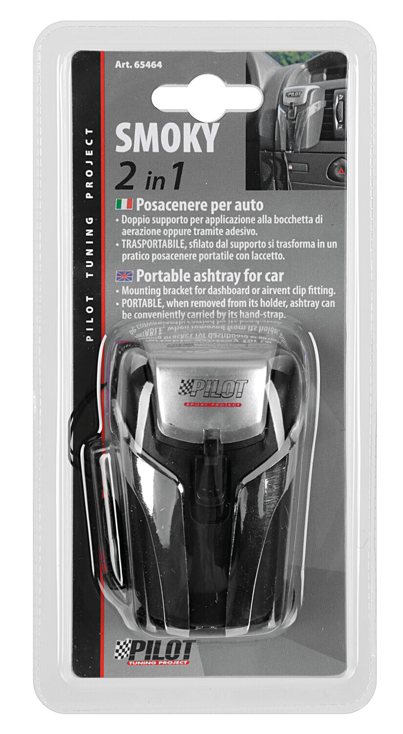 Trasportabile, sfilato dal supporto si trasforma in un pratico posacenere portatile con laccetto.
