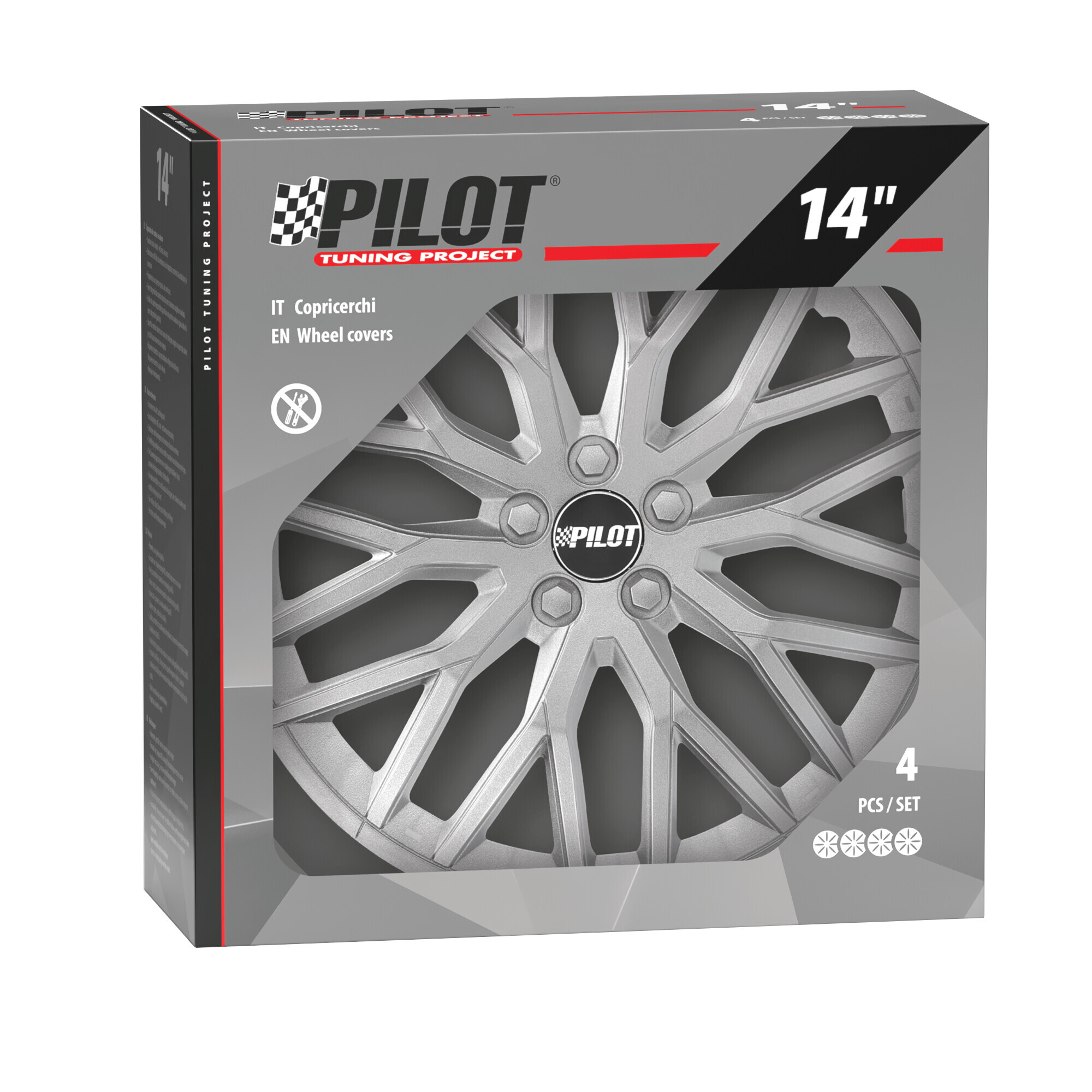 Vortexx – Set 4 copricerchi – 14″ – Nero/Argento