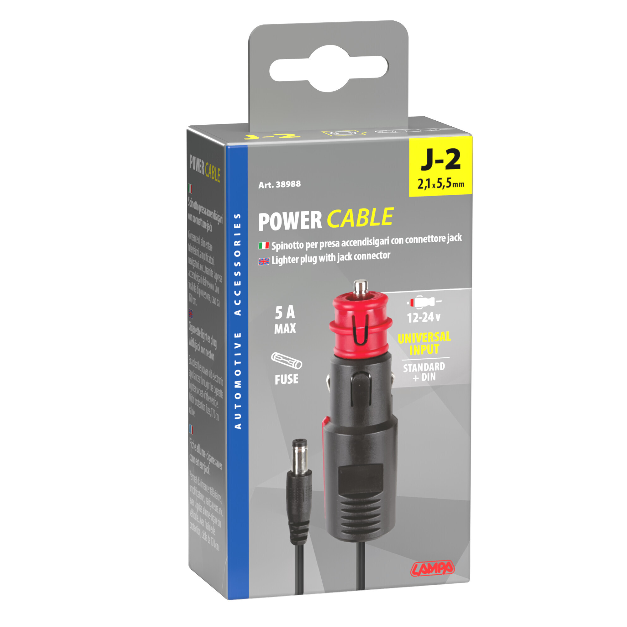 Spinotto per presa accendisigari con connettore Jack J2, 12/24V