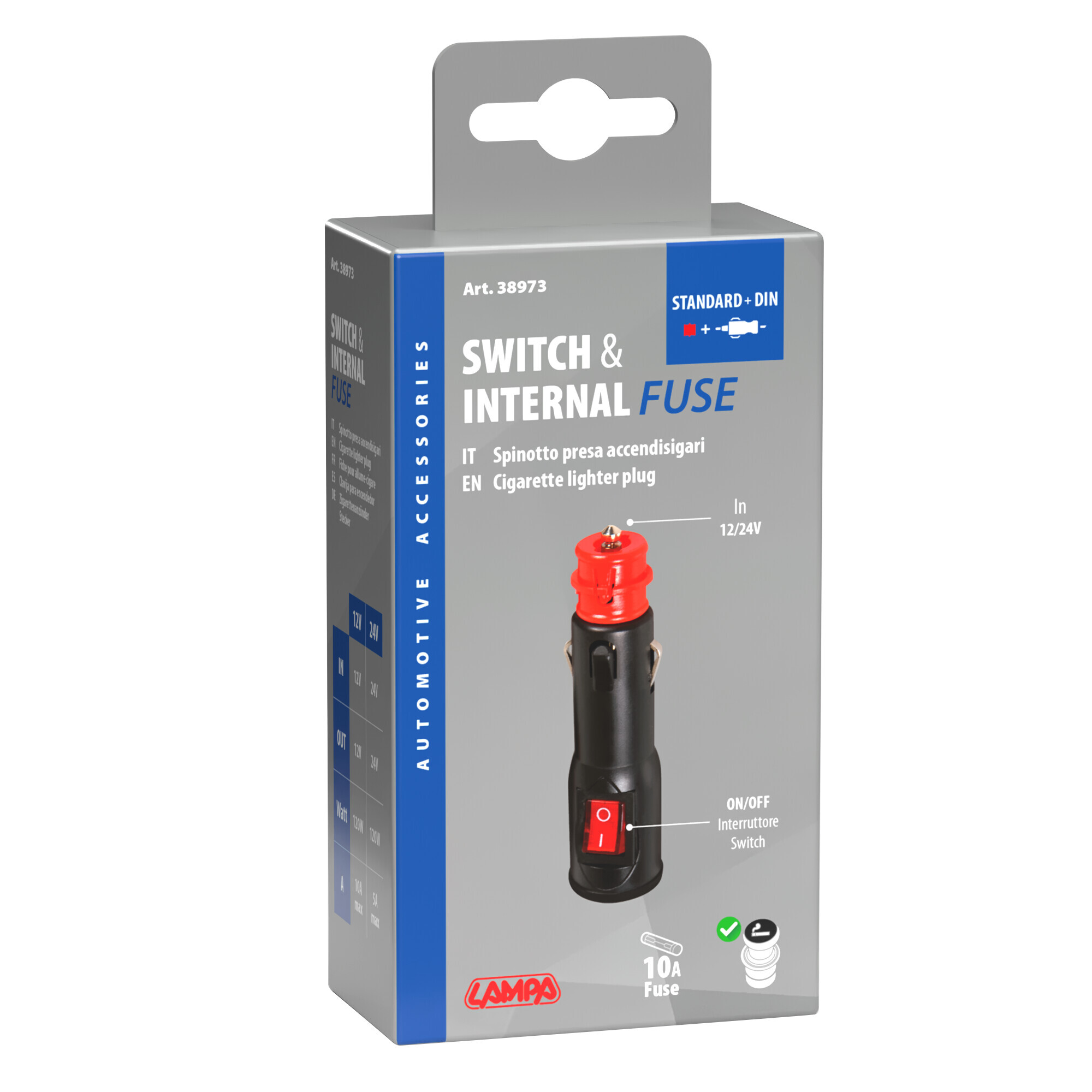 Sicuro, spinotto per presa accendisigari 12/24V