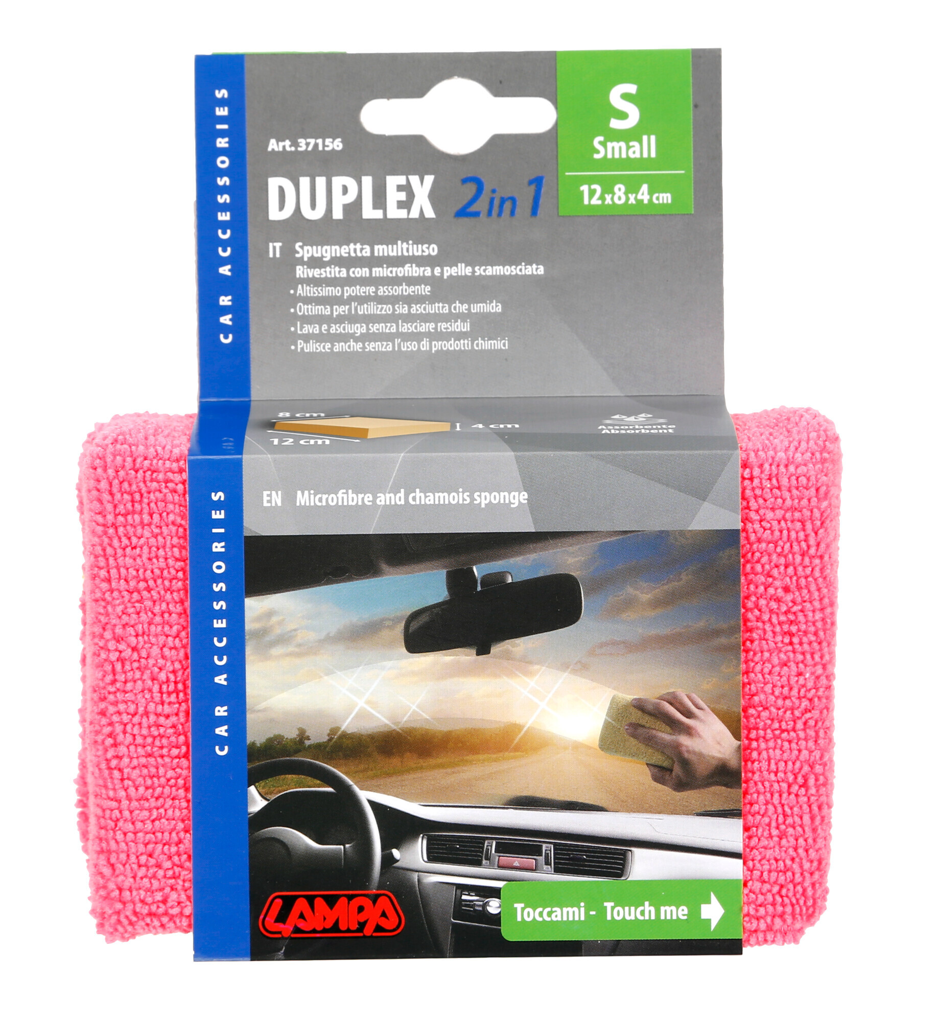 Spugnetta multiuso rivestita con microfibra e pelle scamosciata. Altissimo potere assorbente. Ottima per l’utilizzo sia asciutta che umida. Pulisce anche senza l’uso di prodotti chimici. Lava e asciuga senza lasciare peli. Ottima per la pulizia dell’auto e della casa