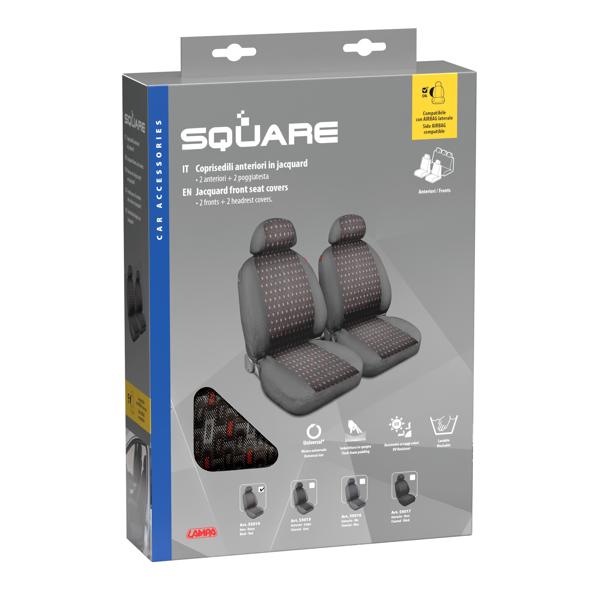 Square, coppia coprisedili anteriori in jacquard – Rosso