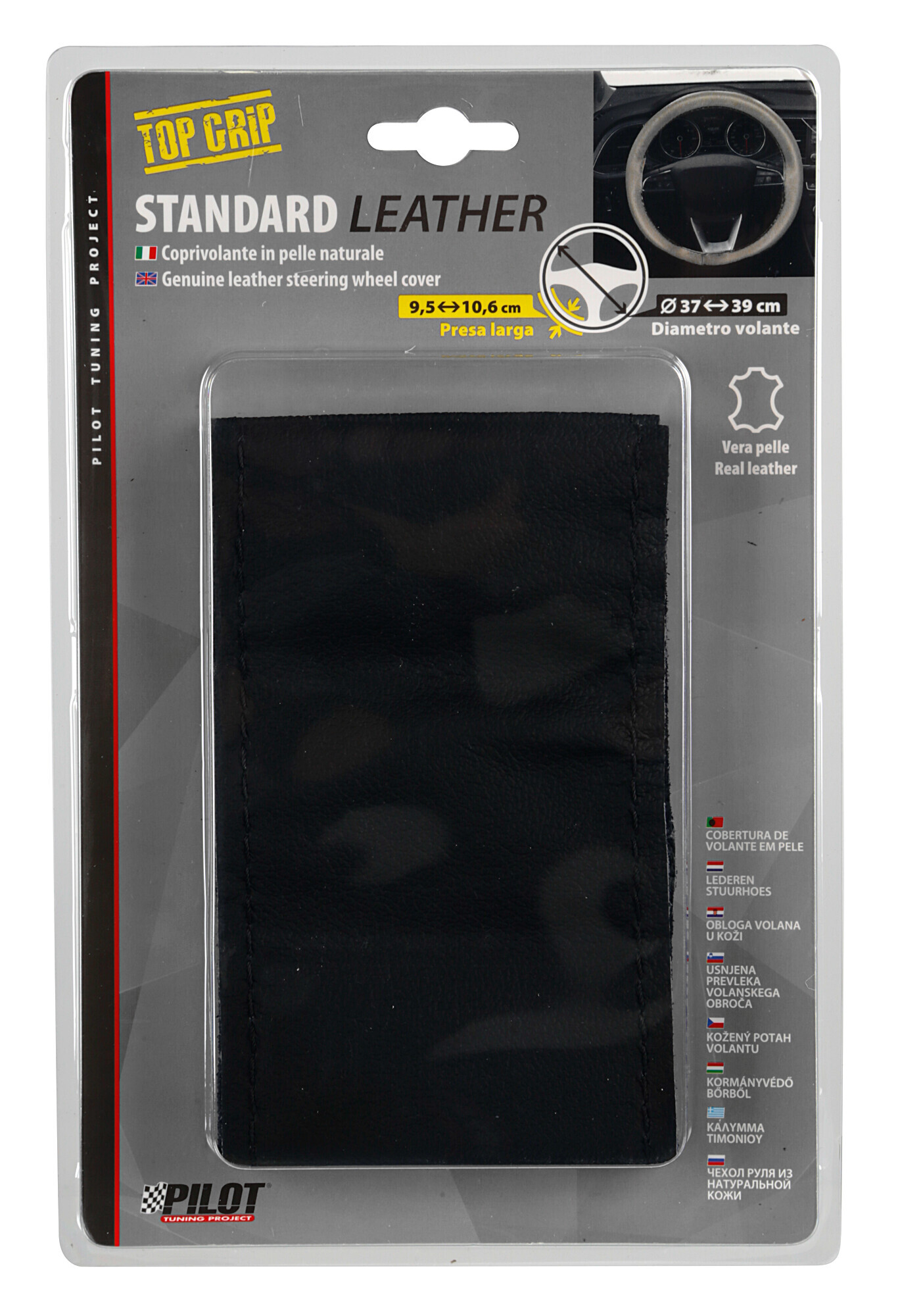 In pelle naturale, si adatta perfettamente all’impugnatura anatomica del volante.