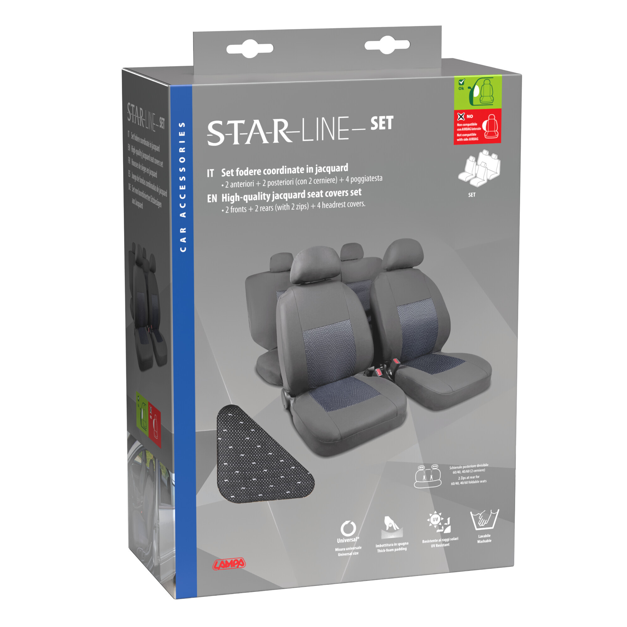 Duka High-Back, coppia coprisedili anteriori in tessuto jacquard e poliestere elasticizzati – Grigio