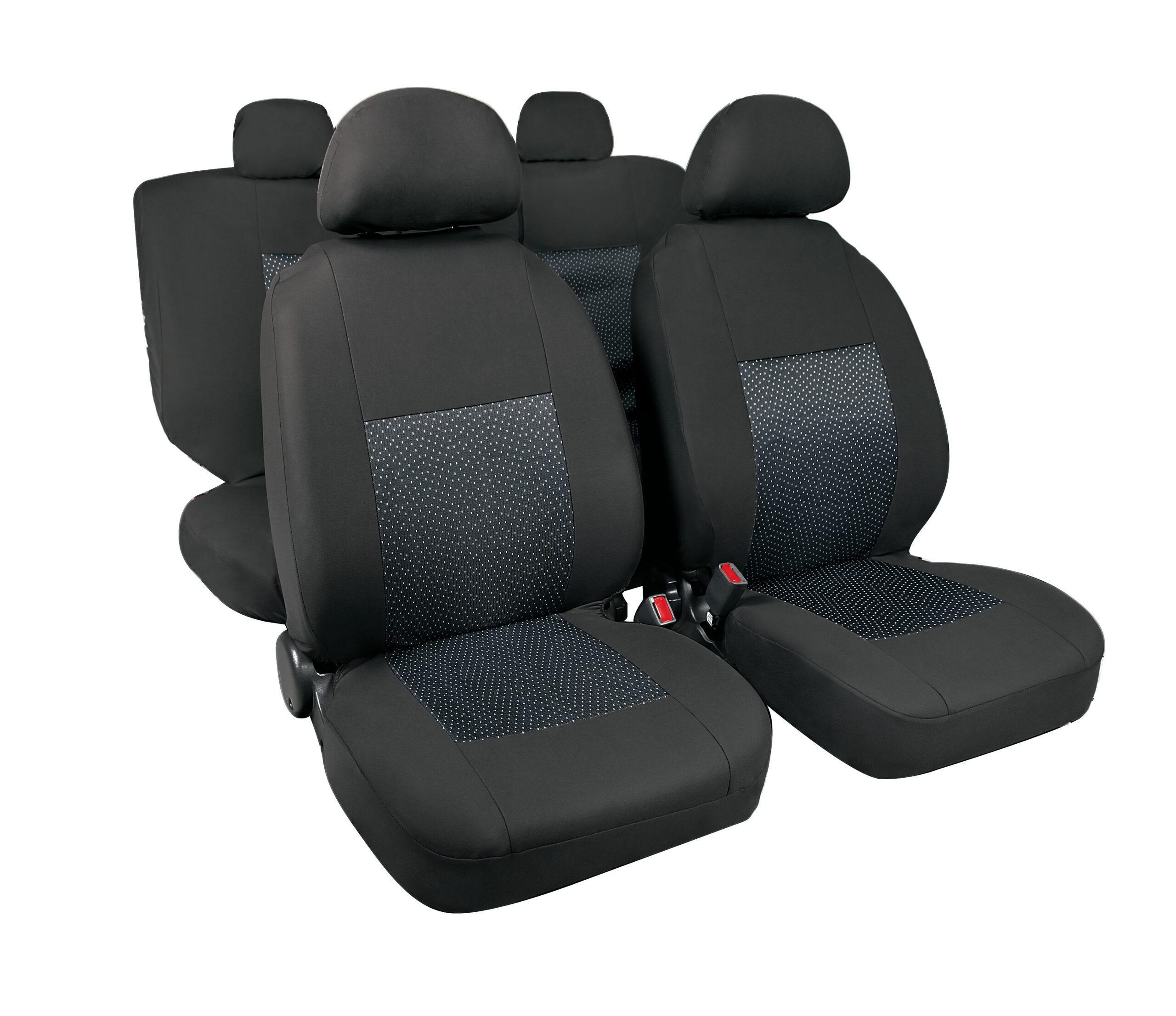 Duka High-Back, coppia coprisedili anteriori in tessuto jacquard e poliestere elasticizzati – Nero