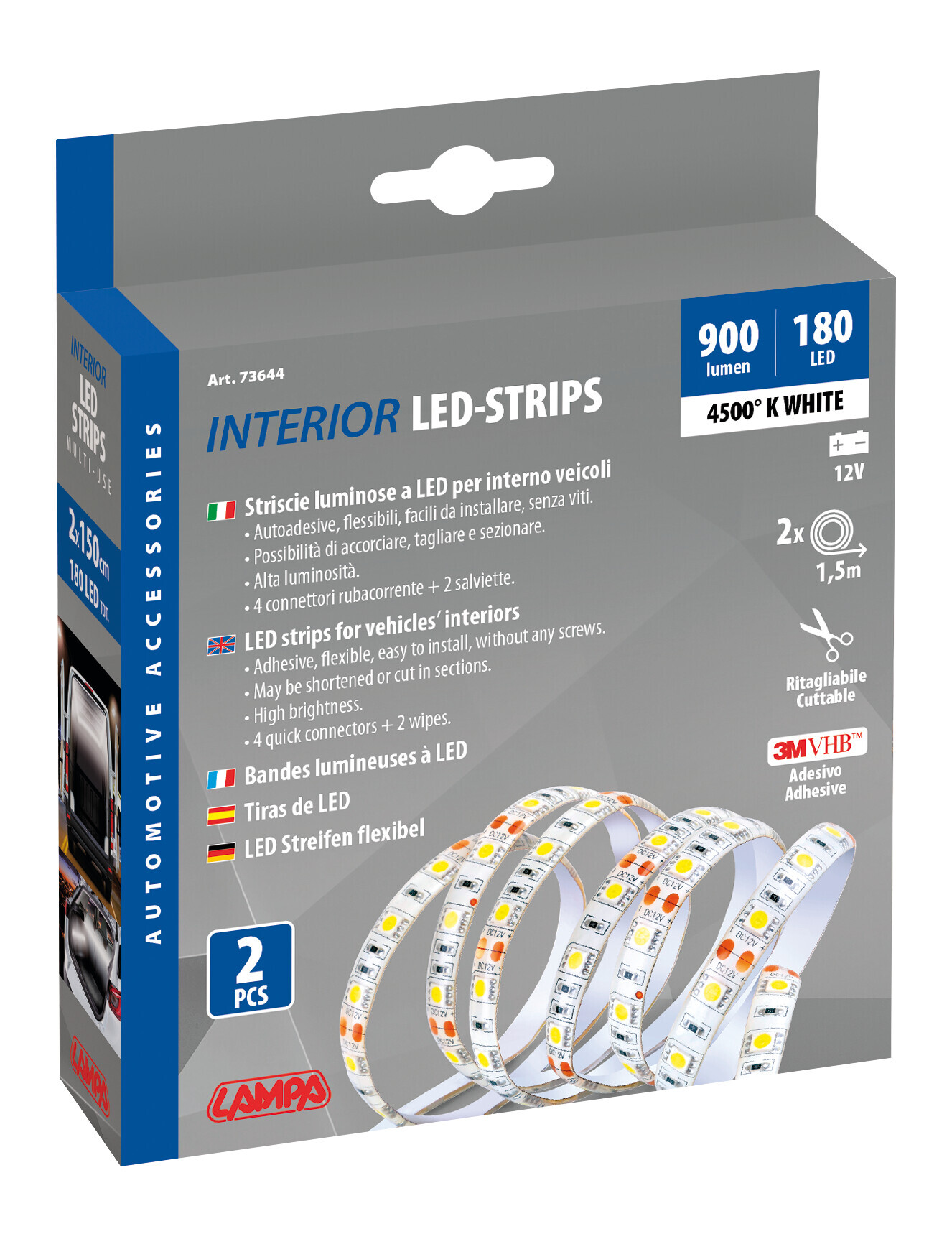 • Possibilità di accorciare, tagliare e sezionare ogni 5 cm (3 Led). Ogni sezione da 3 Led può essere a sua volta utilizzata collegando l’alimentazione 12V ai contatti sul circuito stampato.