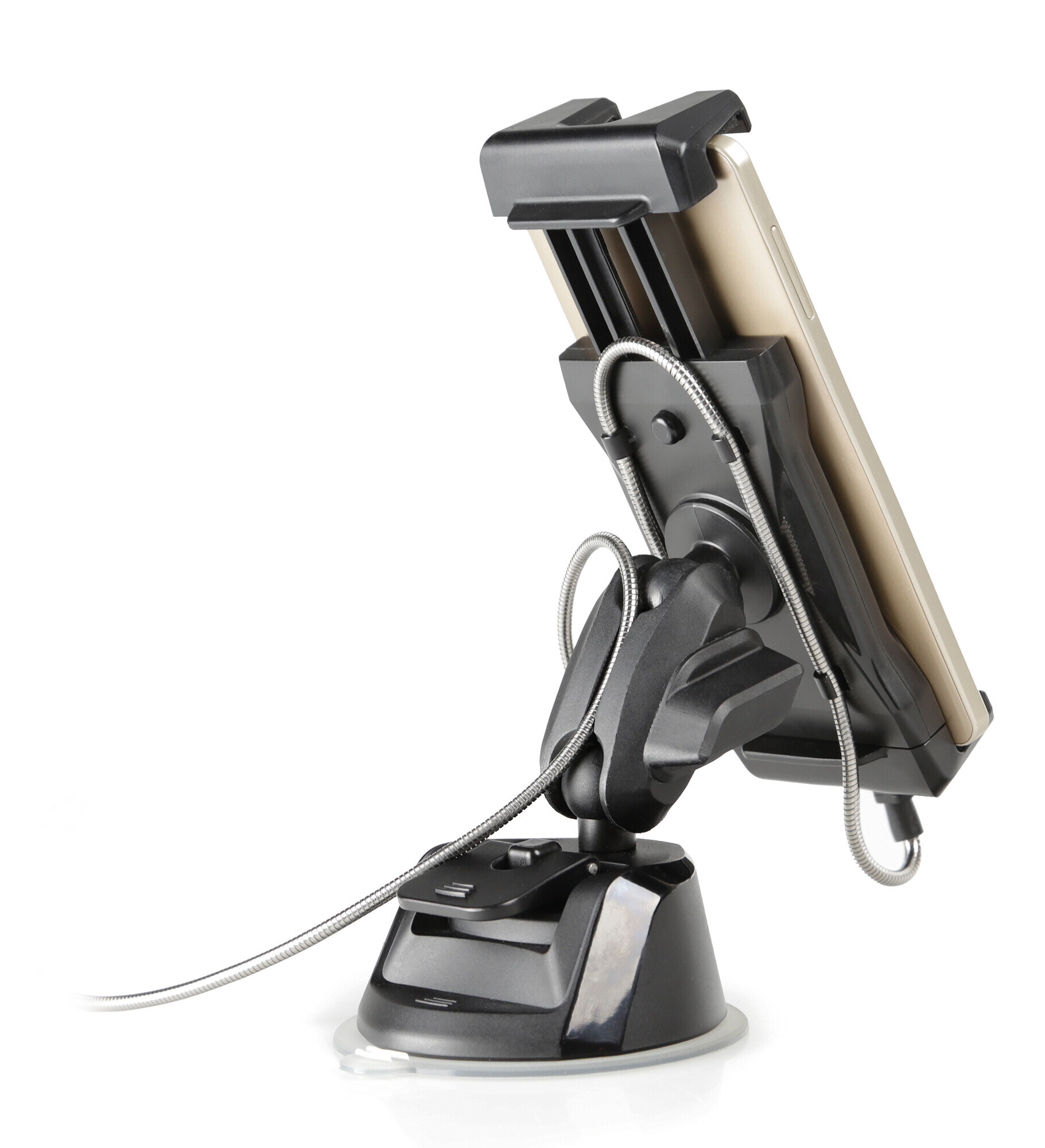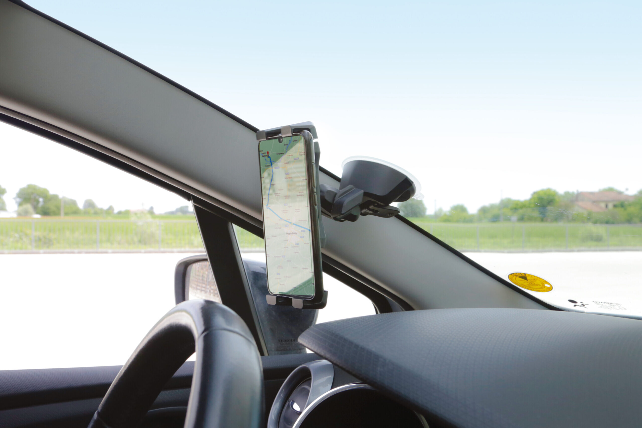 • Ventosa adesiva extra forte per una presa ottimale su parabrezza e cruscotto