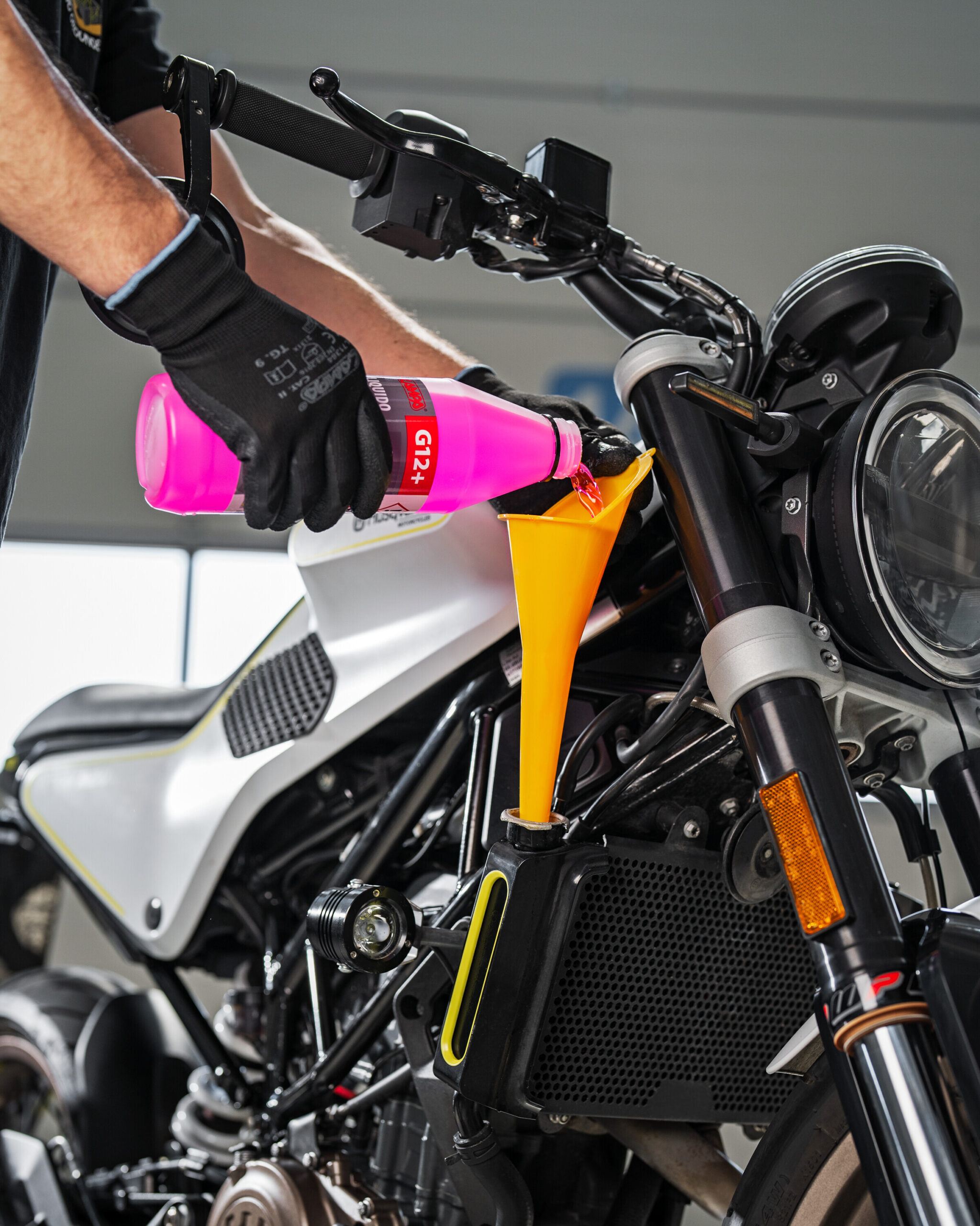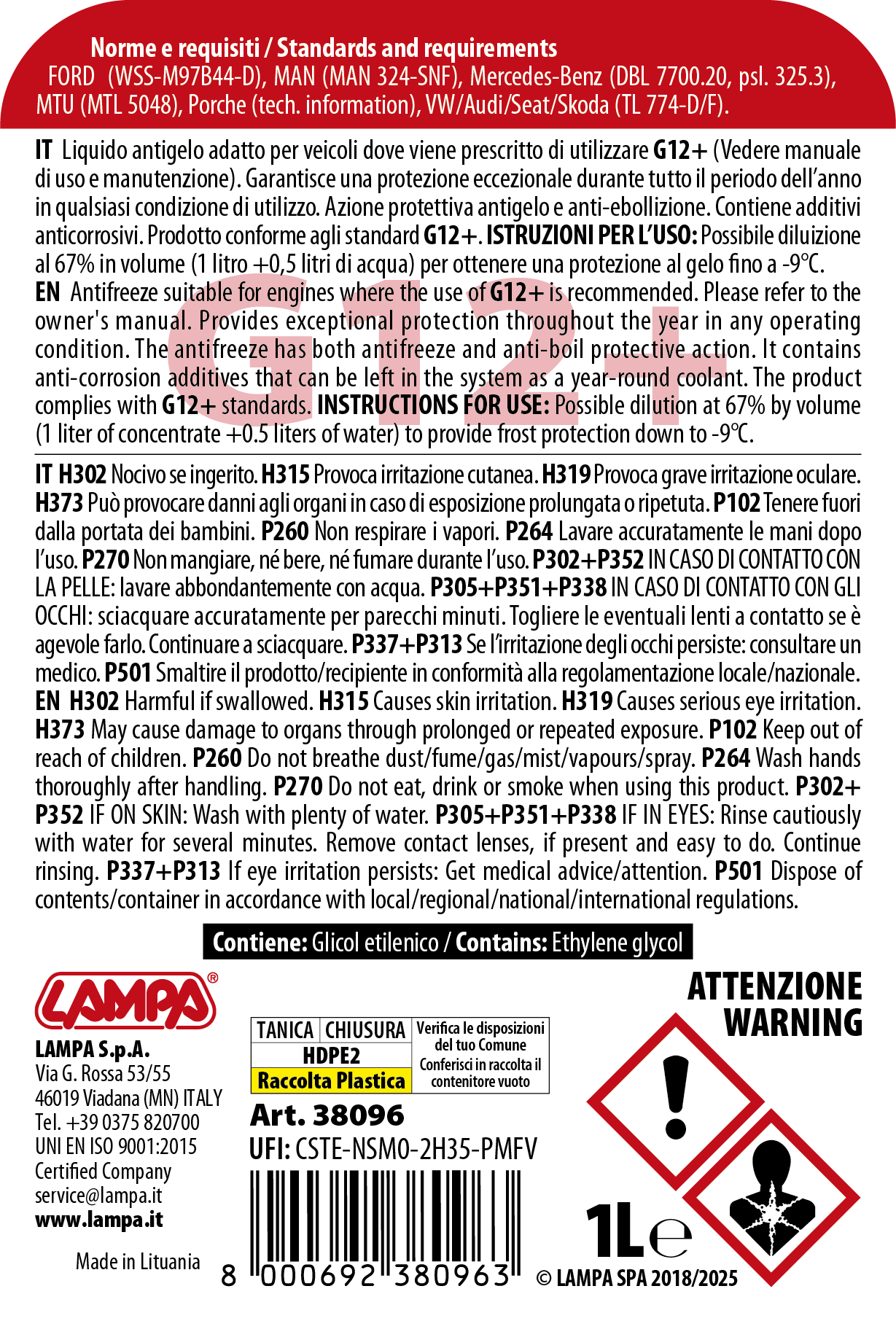 Pronto all’uso. Miscelato con antigelo di alta qualità, contiene additivi anticorrosivi che possono essere lasciati nel circuito come liquido refrigerante anche dopo l’inverno.