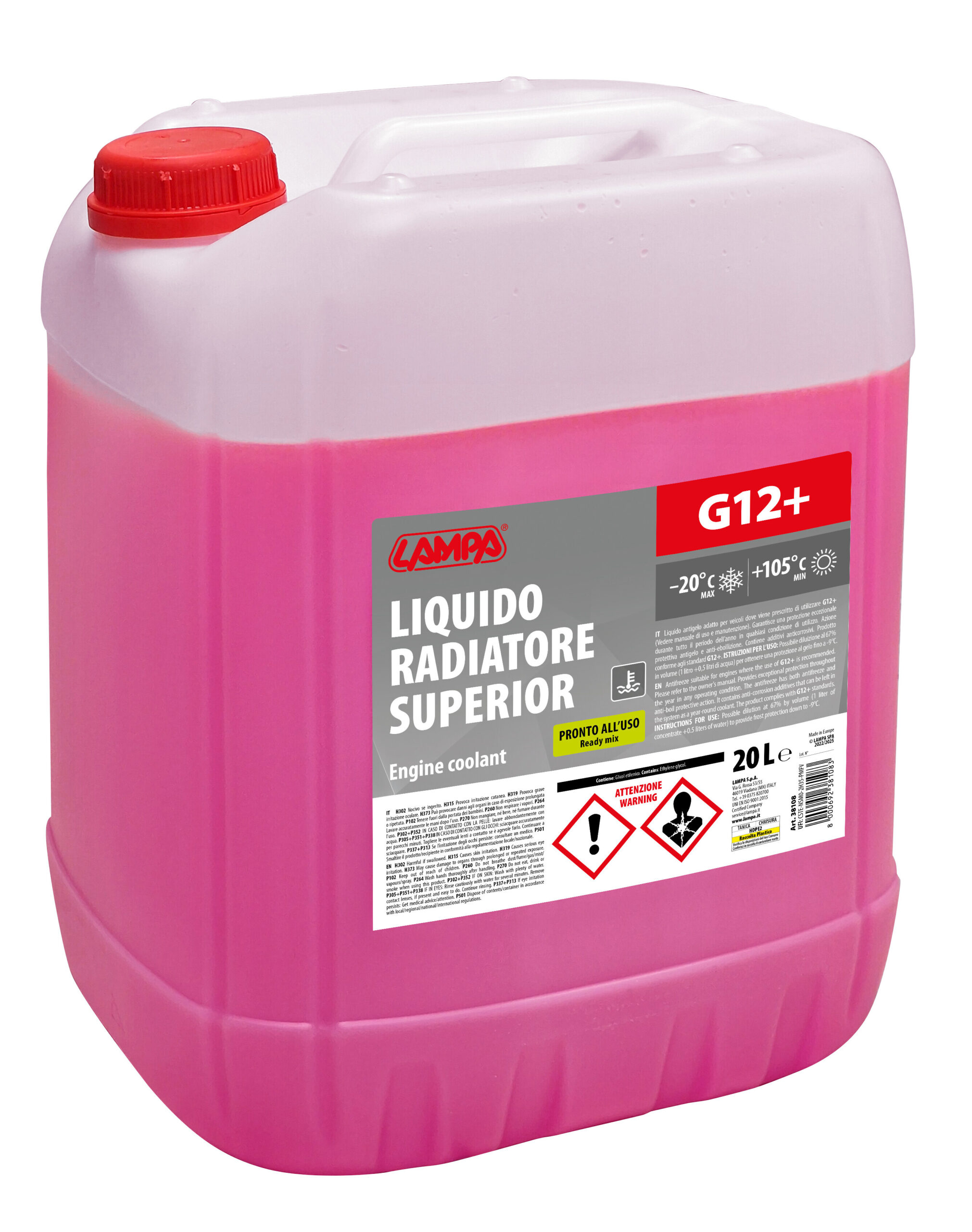 Superior-Rosso G12+, liquido antigelo radiatore – (-20°C/+105°C) – 20 L